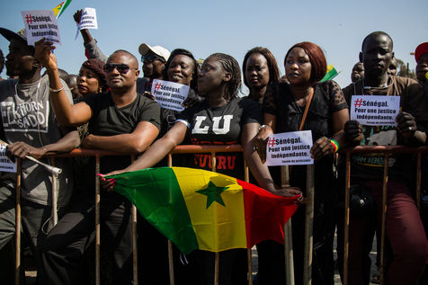 Rassemblement à Dakar le 7 avril 2017. Le mouvement Y'en a Marre appelait les sénégalais à se rassembler pacifiquement pour dénoncer le manque de démocratie et de justice au Sénégal selon ses membres.