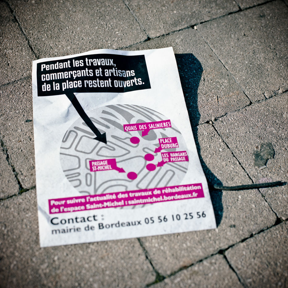 En novembre 2011 à Bordeaux, a débuté le réaménagement urbain du quartier Saint-Michel, réputé pour ses marchés animés au pied de la basilique. La brocante a été déplacé le temps des travaux sur le quai des Salinières, le marché alimentaire étant décalé sur la place Duburg.