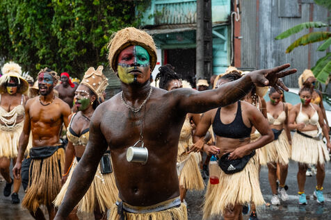 Chaque année le carnaval de Guadeloupe attire des milliers de touristes et passionnés venus du monde entier. Le « Mas maten » fait partie des temps forts de cette période carnavalesque. Il désigne en créole le carnaval du matin. Il donne le coup d'envoi des jours gras, qui viennent clôturer 6 semaines intenses de festivités. Cette année, la pluie était exceptionnellement au rendez-vous. Mais la détermination des carnavaliers, venus en grand nombre défiler, est restée intacte.