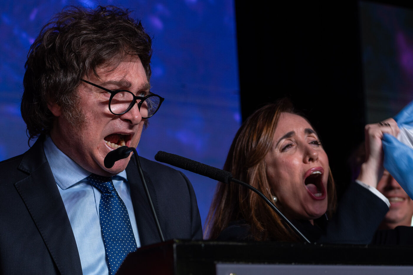Javier Milei, les candidats et les sympathisants de La Libertad Avanza ont reçu les résultats des élections dans leur bunker de l'hôtel Libertador.