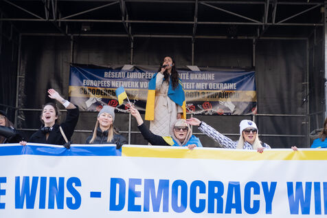 On 25 February 2023, a demonstration against the Russian invasion of Ukraine and in solidarity with the Ukrainian people after one year of war took place in Brussels.