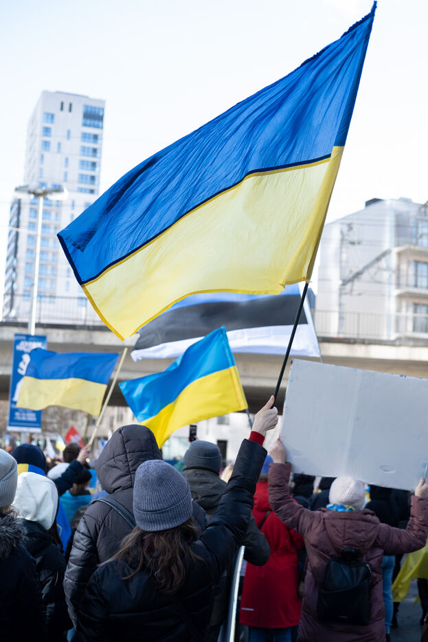 Le 25 février 2023, une manifestation contre l'invasion russe en Ukraine et en solidarité avec le peuple ukrainien après un an de guerre a eu lieu à Bruxelles.