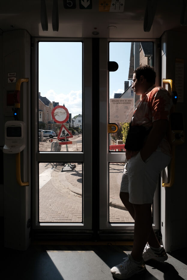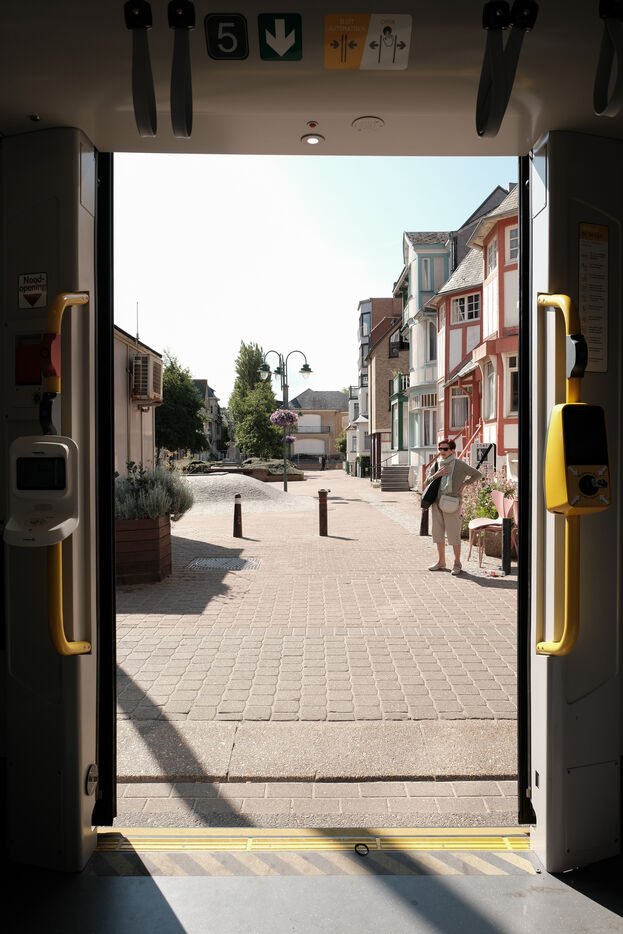 Discover this tram in July 2023, through its doors, where the scenery follows one another and passengers come and go as they please.