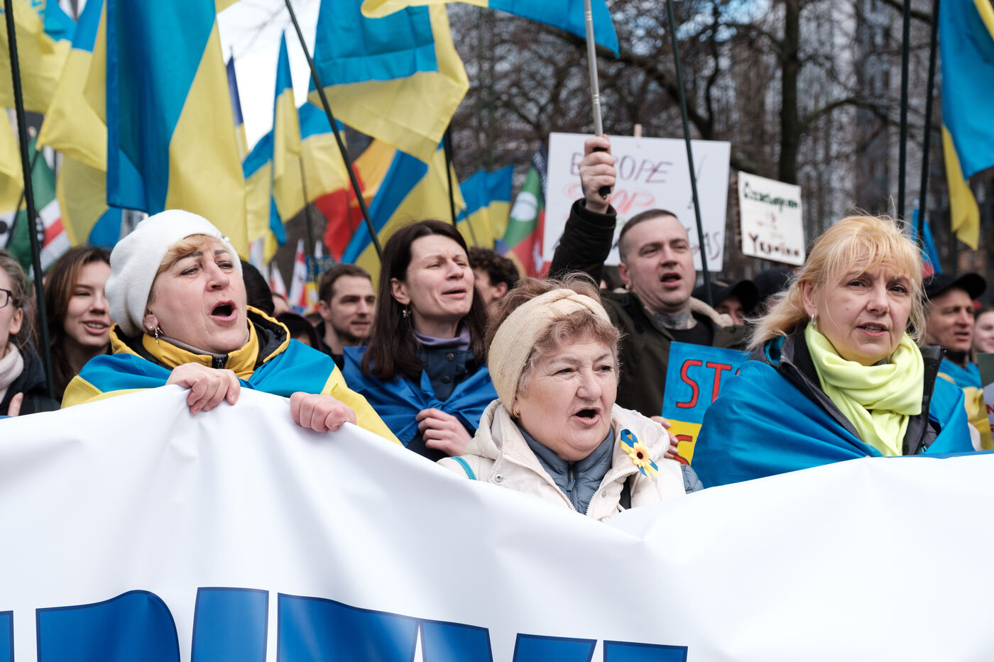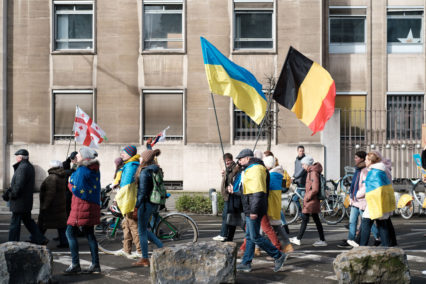 On 24 February 2024, 12 associations, accompanied by Belgians and Ukrainians, gathered in Brussels for a European solidarity march in support of Ukraine, to mark the 2-year anniversary of Russia's invasion of the country.