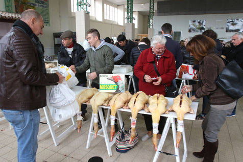 Marche au gras traditionnel durant la periode hivernale les producteurs fermiers du sud-ouest vendent leur productions de canards,d'oies et de foie gras directement au consommateur.