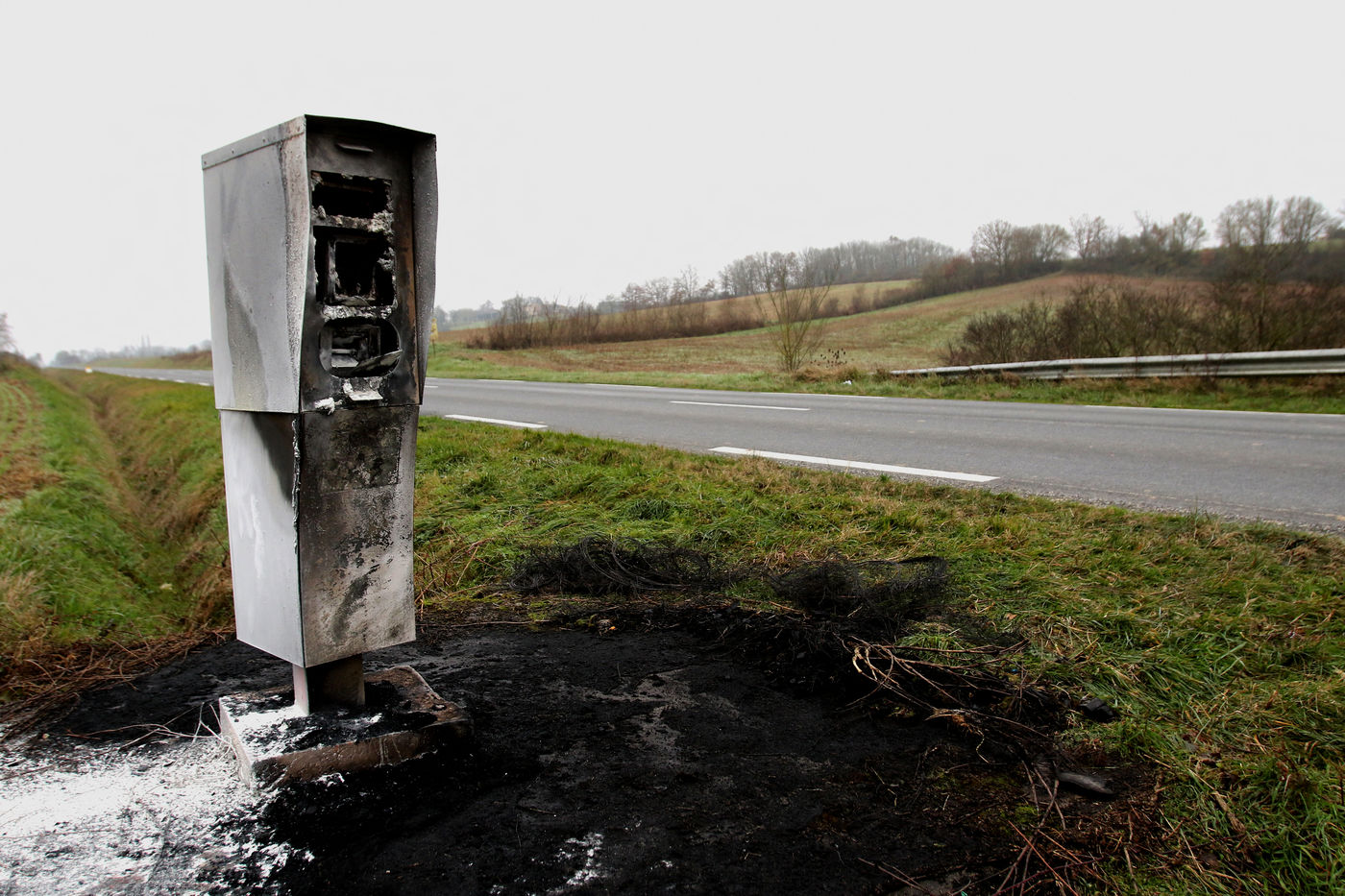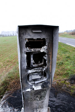 Un radar automatique de contrôle de vitesse entièrement détruit par un incendie crimminel au bord de la route departementale RD 929.