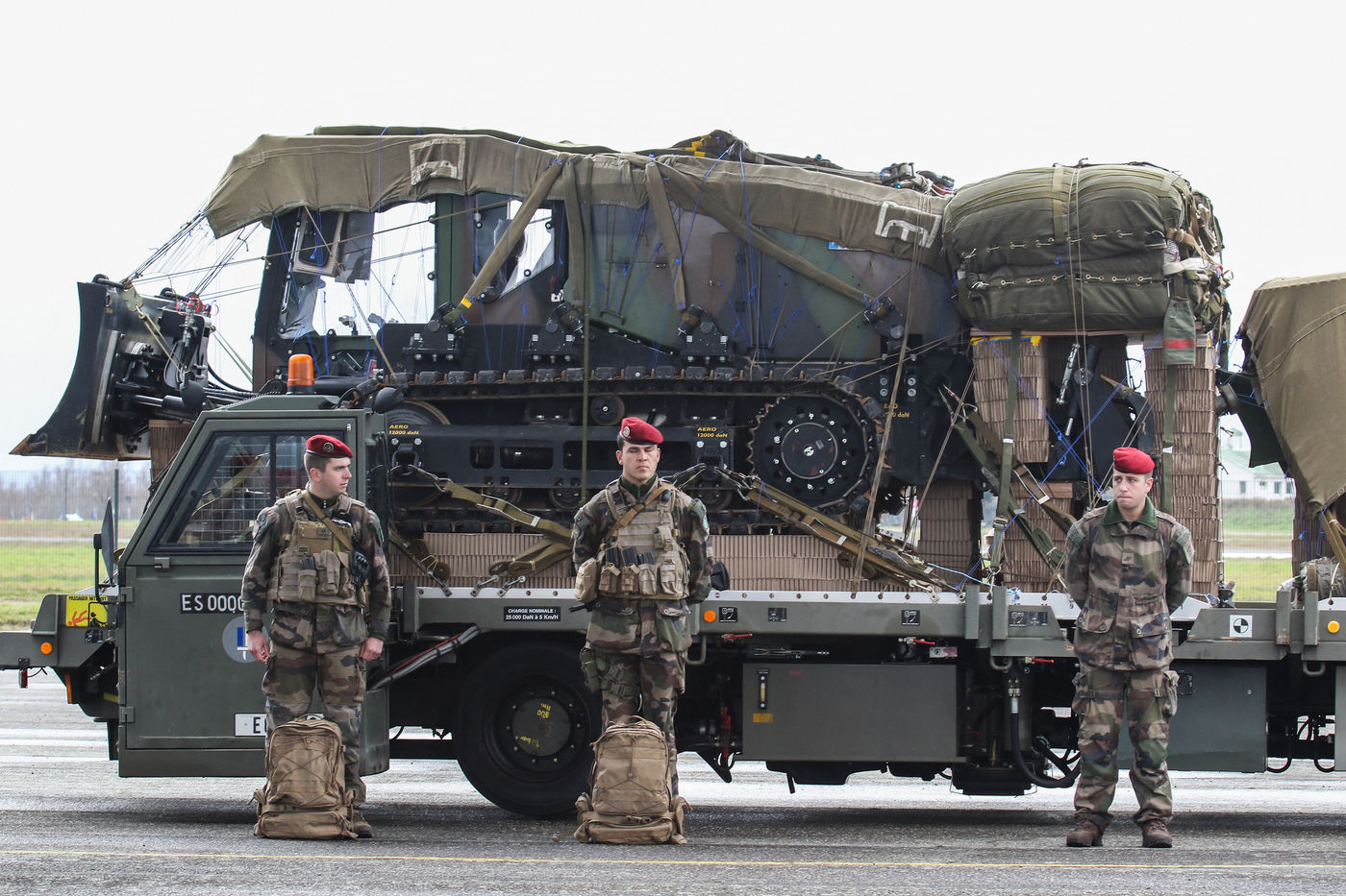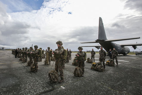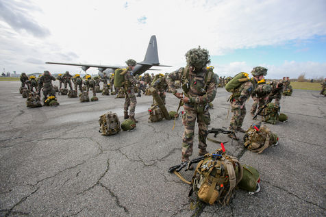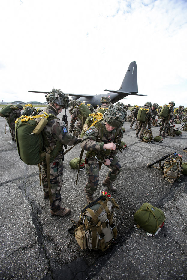 Paratroopers of the French army of the airborne troops of the 11th Francazal paratroop brigade on the tarmac of the Francazal military air base.