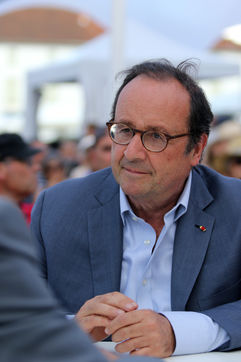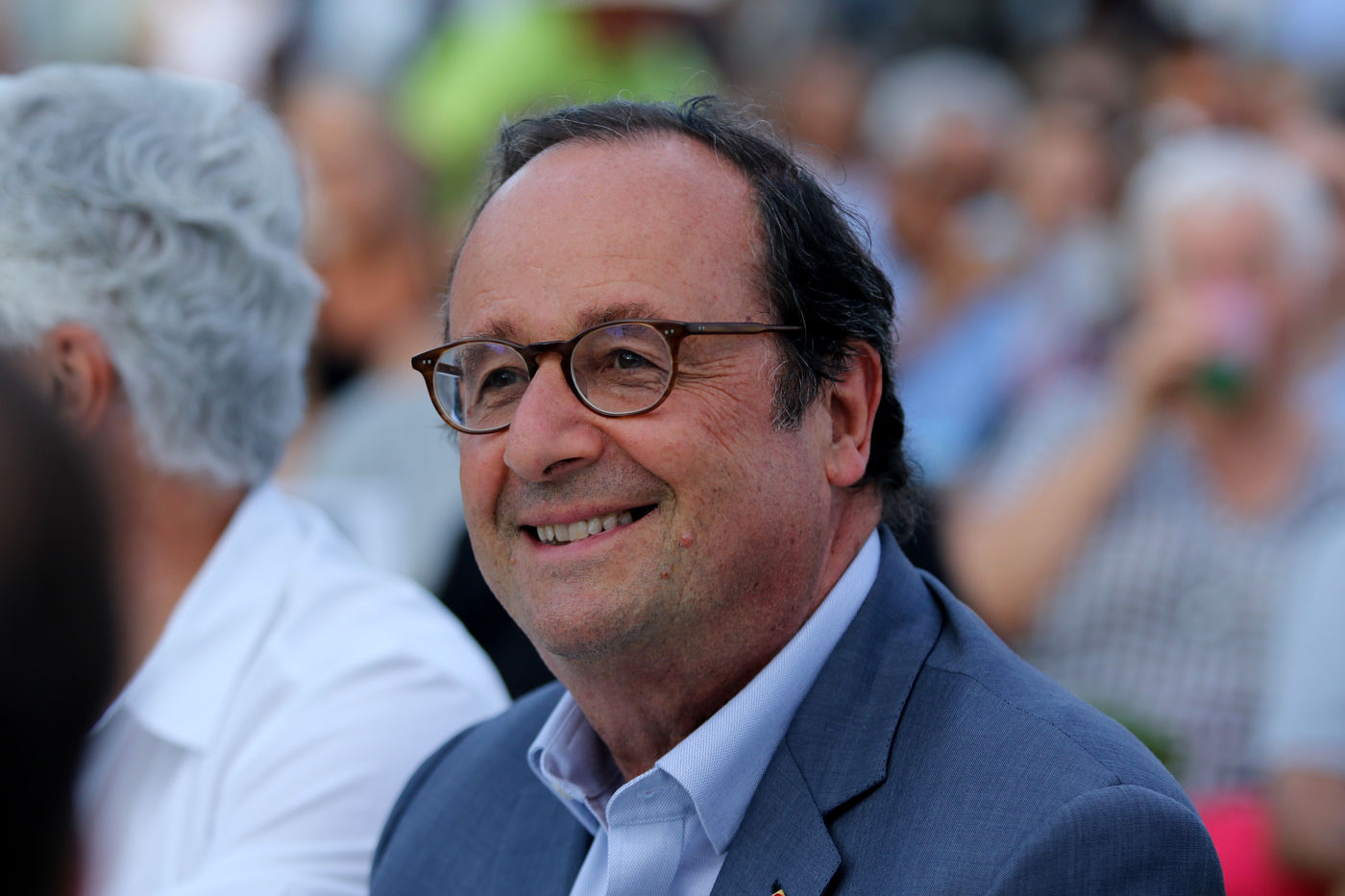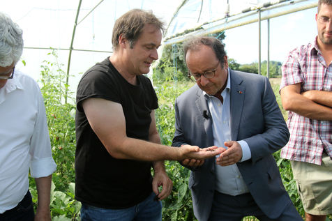 Francois Hollande visite une exploitation agricole biologique Marciac, France - 28 Juillet 2019.