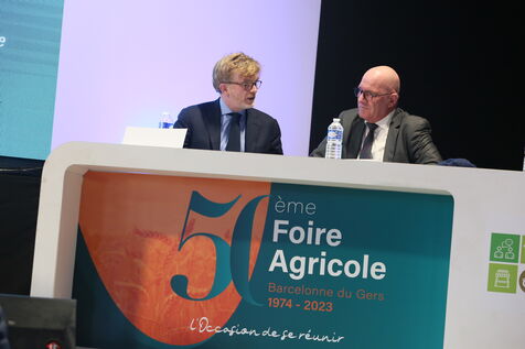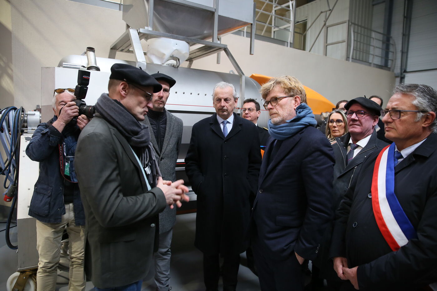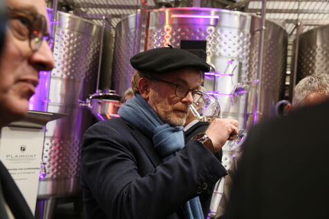 Saint Mont, France, 2023-02-10. Experimental winery of the Plaimont producers during the inauguration of the new winery, which will allow research and adaptation of old vines to face climate change, was built by the wine cooperative of Plaimont producers in Saint Mont.
