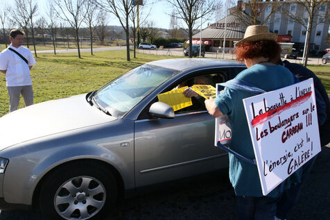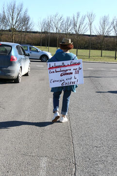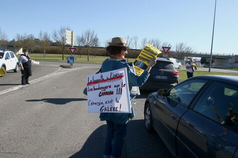 Artisans boulangers et bouchers du Gers lors d'une opération de distribution de tracts à des automobilistes à un rond point d'Auch afin de les informer de la hausse de leurs charges du à l'inflation sur les matières premières et surtout des prix de l'énergie avec des factures d'élèctricite et de gaz mettant en péril leurs entreprises artisanales