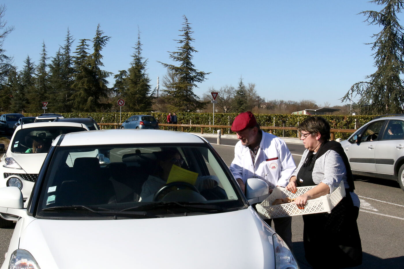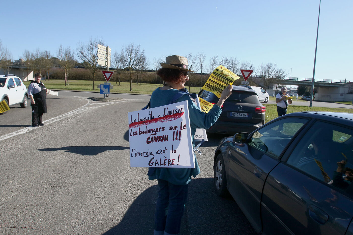 A baker during an operation of distribution of leaflets to motorists at a roundabout of Auch in order to inform them of the increase of their charges due to the inflation on the raw materials and especially of the prices of energy with bills of electricity and gas putting in peril their artisanal businesses.