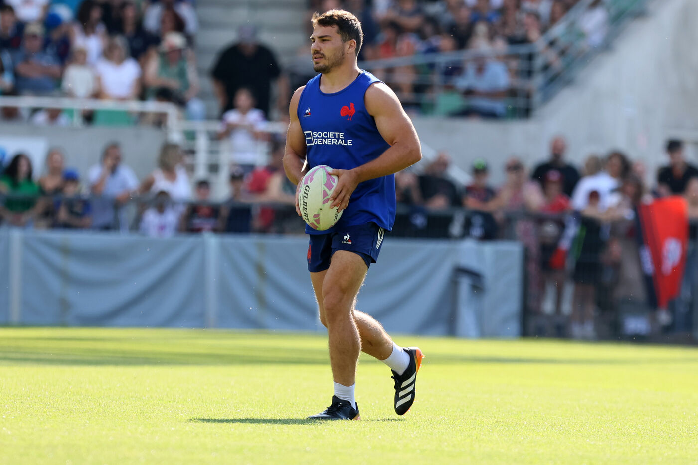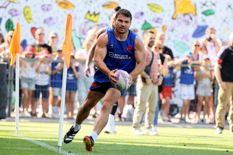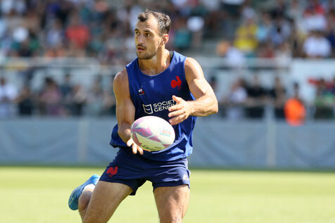 Pau, France, 2024-07-11. French sevens rugby player during a training session at the Stade du Hameau in Pau during the preparation camp before the Paris 2024 Olympic Games .Photograph by Sebastien Lapeyrere.