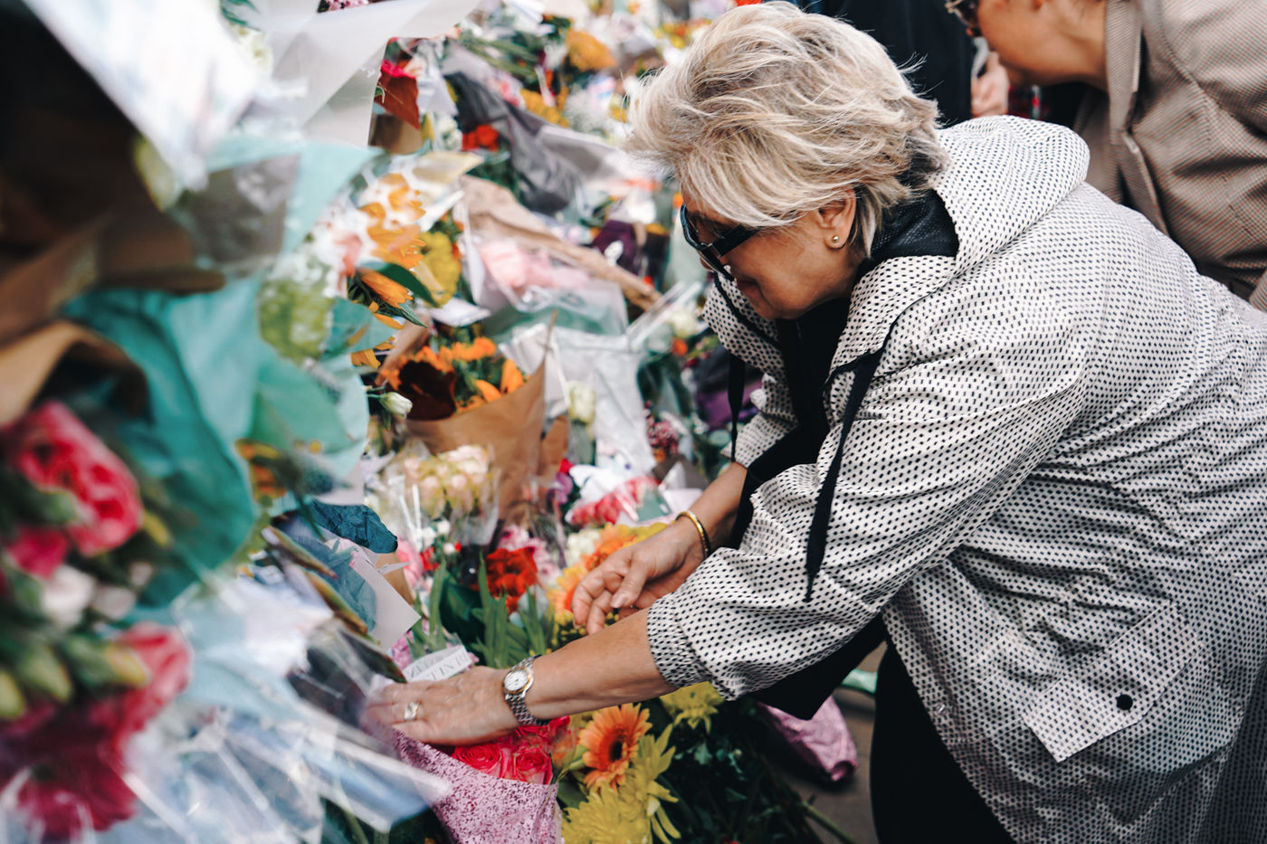 On 8 September 2022, Elizabeth II passed away. During the weekend, Londoners pay tribute to her in St James's Park and Buckingham Palace. Flowers, words and gifts are left on the gates.