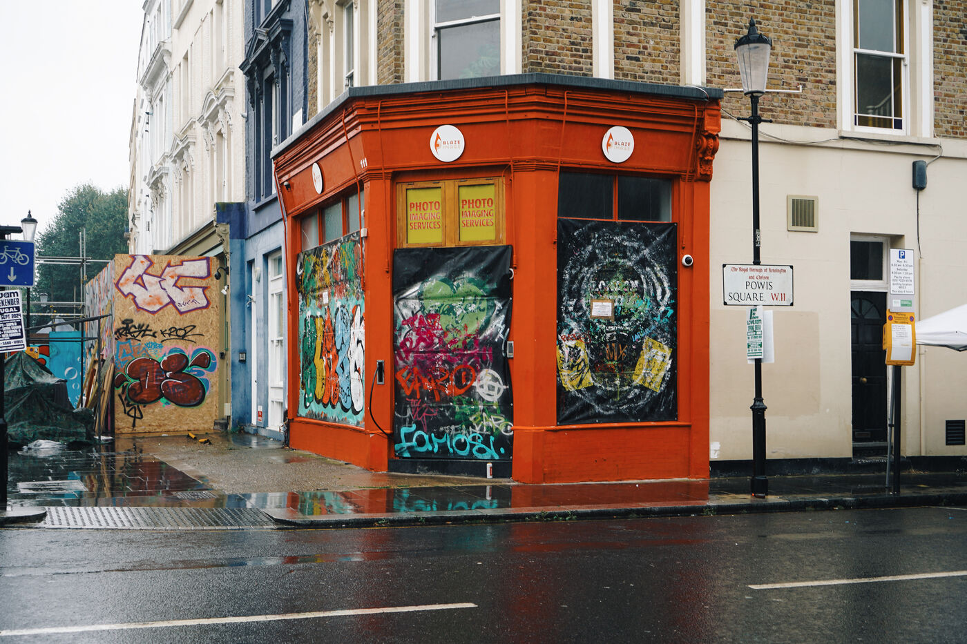 À l'approche du Carnaval de Notting Hill, les habitants et commerçants se barricadent pour protéger leurs propriétés. Panneaux de bois et carton couvrent vitrines et fenêtres, offrant aussi une toile vierge aux street artists.