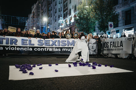 Le 25 novembre 2024, plusieurs milliers de personnes ont défilé dans les rues de Madrid pour dénoncer les violences de genre à l'occasion de la Journée Internationale de l'élimination des violences faites aux femmes. En 2024, 41 femmes ont été tuées en Espagne par leur compagnon, ex-compagnon ou par un proche. Leurs noms ont été égrenés lors de la manifestation à Gran via et des fleurs violettes déposées en fin de cortège en hommage à chacune d'elle.