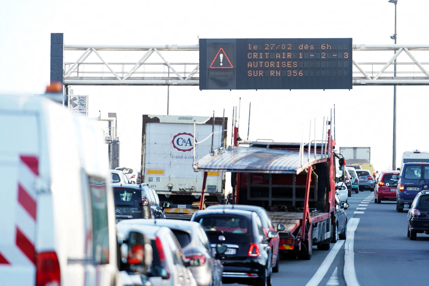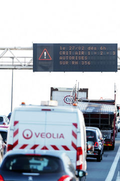 Anti-pollution restrictive driving measures. For the first time Crit'Air anti-pollution vignettes are mandatory in Lille metropolis to ban the most-polluting vehicles on February 27, 2019 in Lille, France