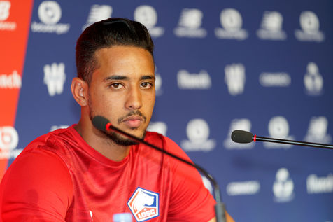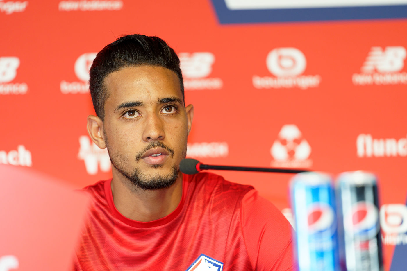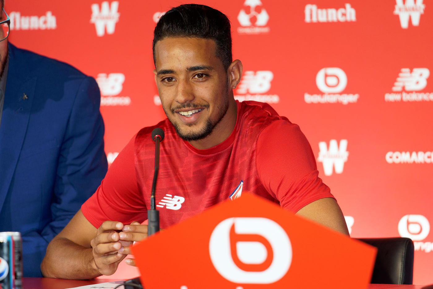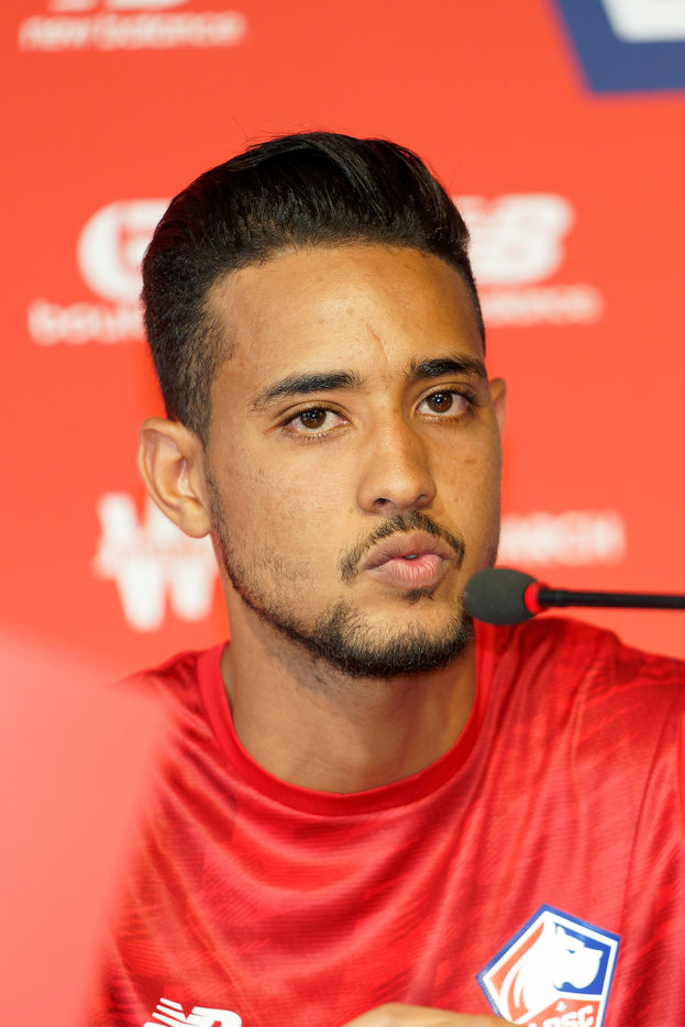 Saad Agouzoul attends press conference after signing with Lille OSC soccer team for 2019-2020 season of 1st league on May 12, 2019 at Luchin Training Center of LOSC in Camphin-en-Pevele near Lille, France.