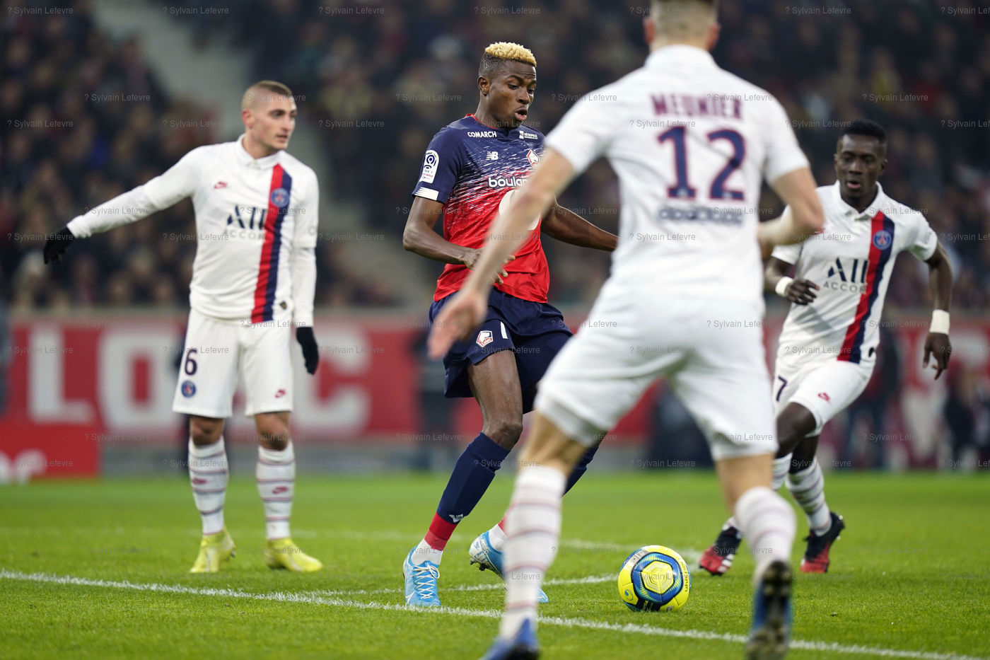 Ligue 1 soccer match between Lille Olympique Sporting Club (LOSC) and Paris Saint-Germain (PSG) at Pierre Mauroy Stadium, in Villeneuve d'Ascq, on January 26th, 2020.