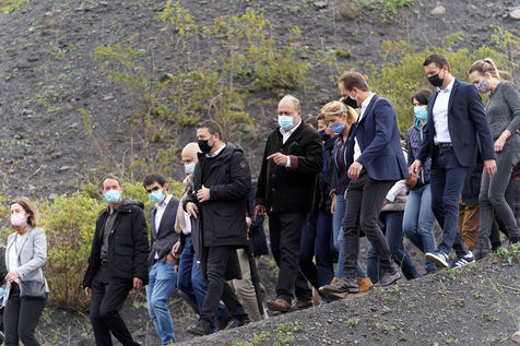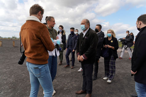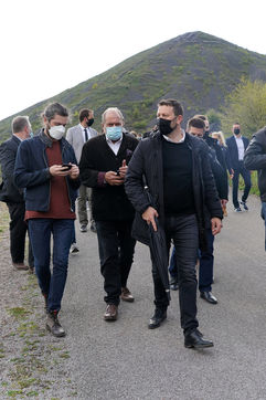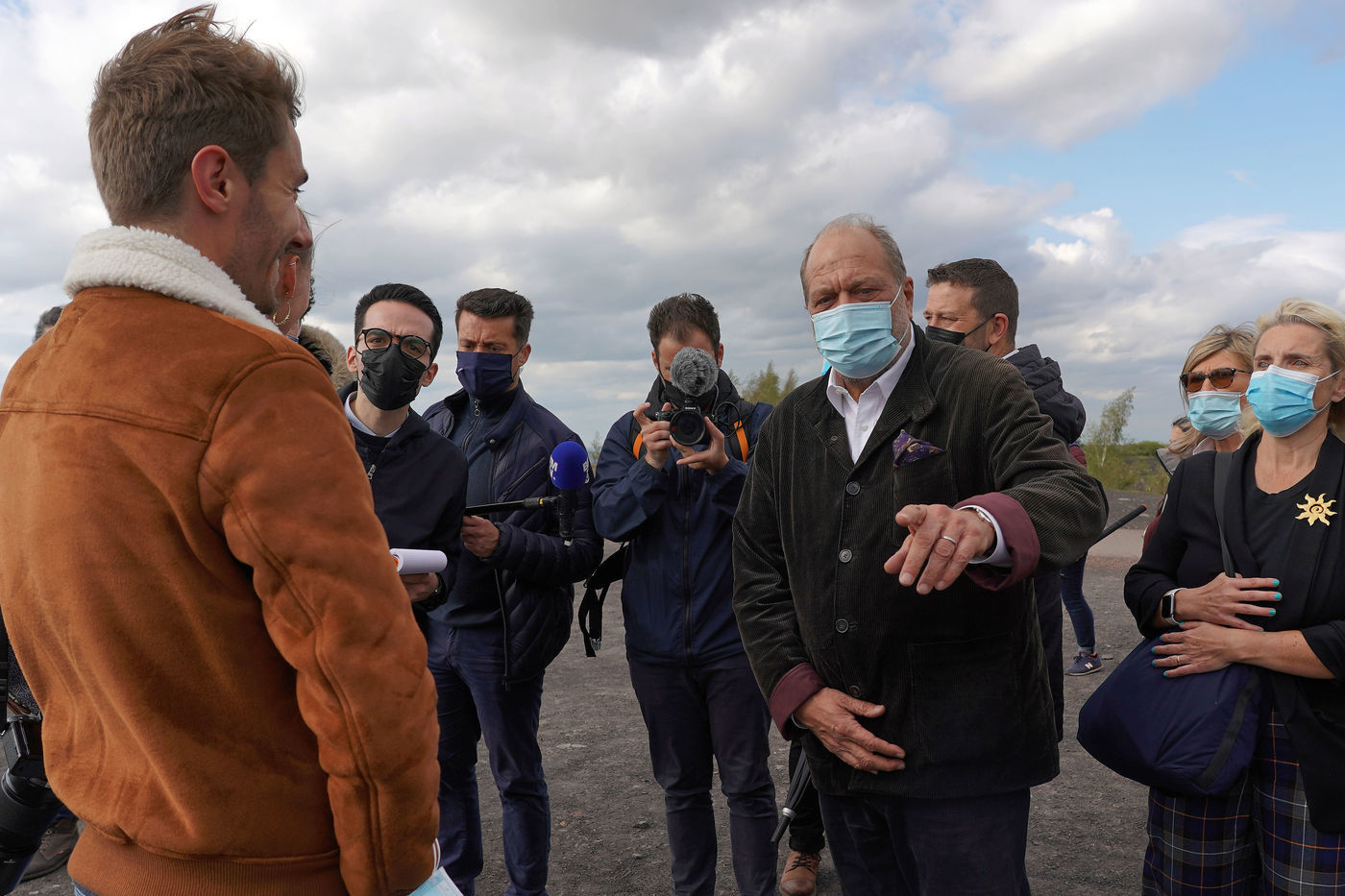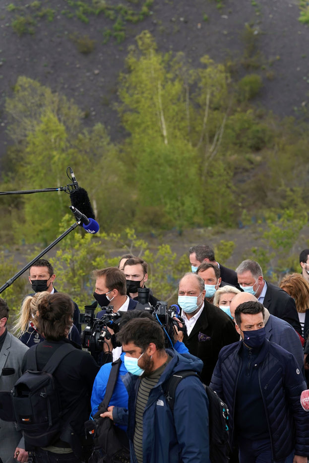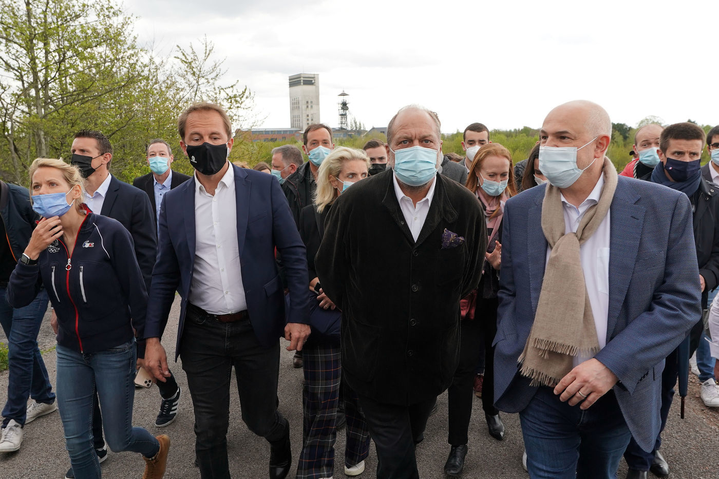 Eric Dupond-Moretti (LREM) campaigns in Loos-en-Gohelle, near Lens, Pas-de-Calais, France for upcoming regional election with head of list Laurent Pietraszewski, Thibaut Guilluy and Tiphaine Auziere (Brigitte Macron's daughter) on May 08, 2021.