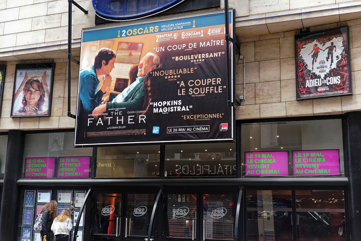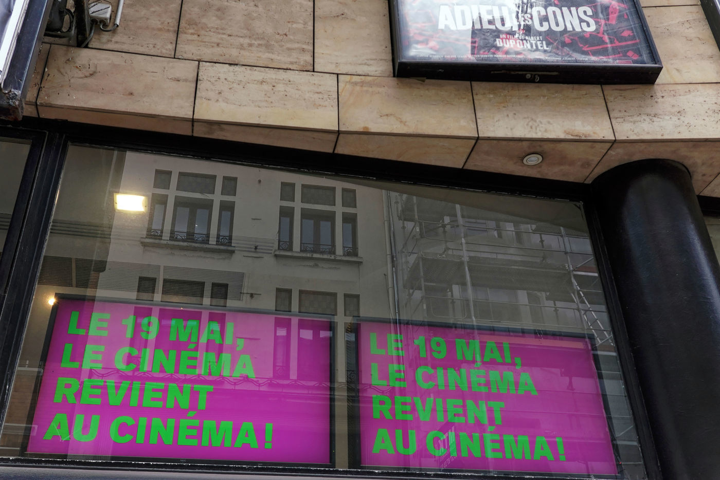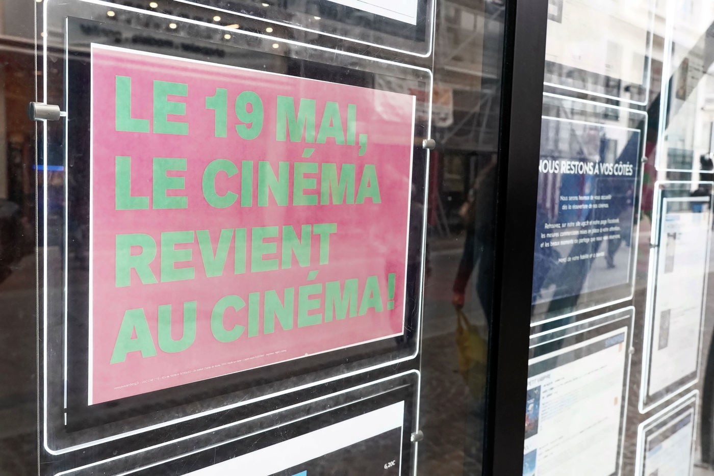 A poster announcing the reopening on May 19 following the end of the lockdown in France on the facade of a downtown cinema in Lille, France, on May 18th, 2021.