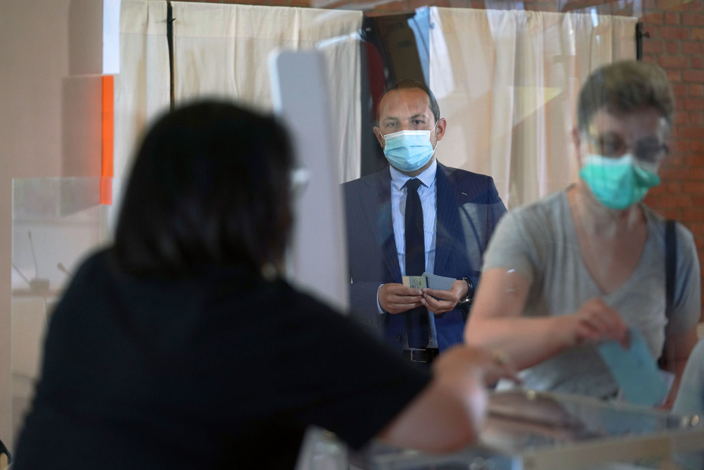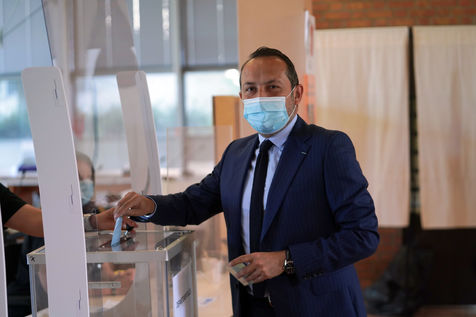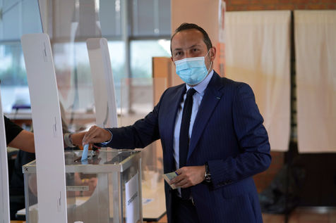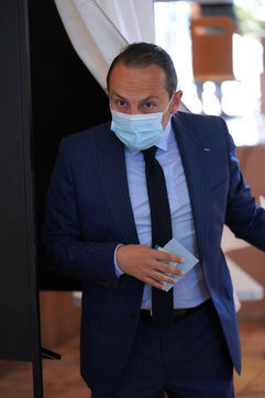 Head of list for far right party Rassemblement National (National Rally) Sebastien Chenu votes for regional elections in Denain, Northern France, on June 20, 2021.