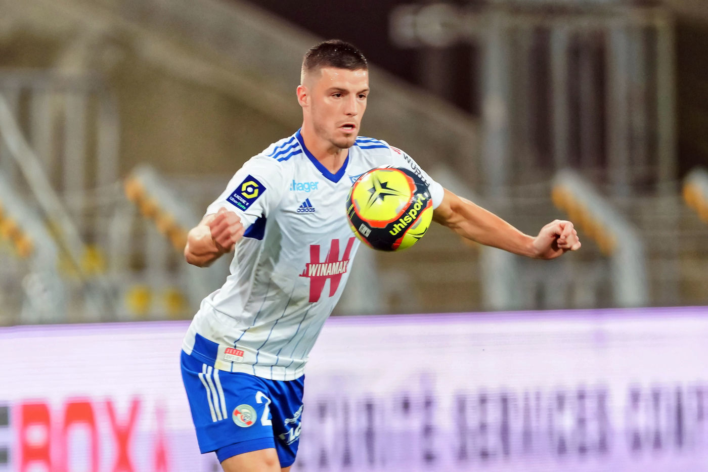 Ligue 1 Uber Eats match between Lens and Strasbourg at Stade Bollaert-Delelis on September 22, 2021 in Lens, France.