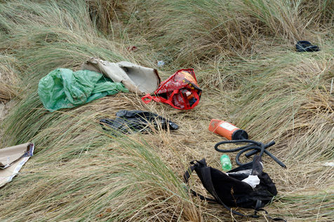 Personal belongings of migrants lie in the sand of the beach of Gravelines. They were abandoned during an attempt to cross the English Channel, in Gravelines, near Dunkirk, France, Oct 12, 2021