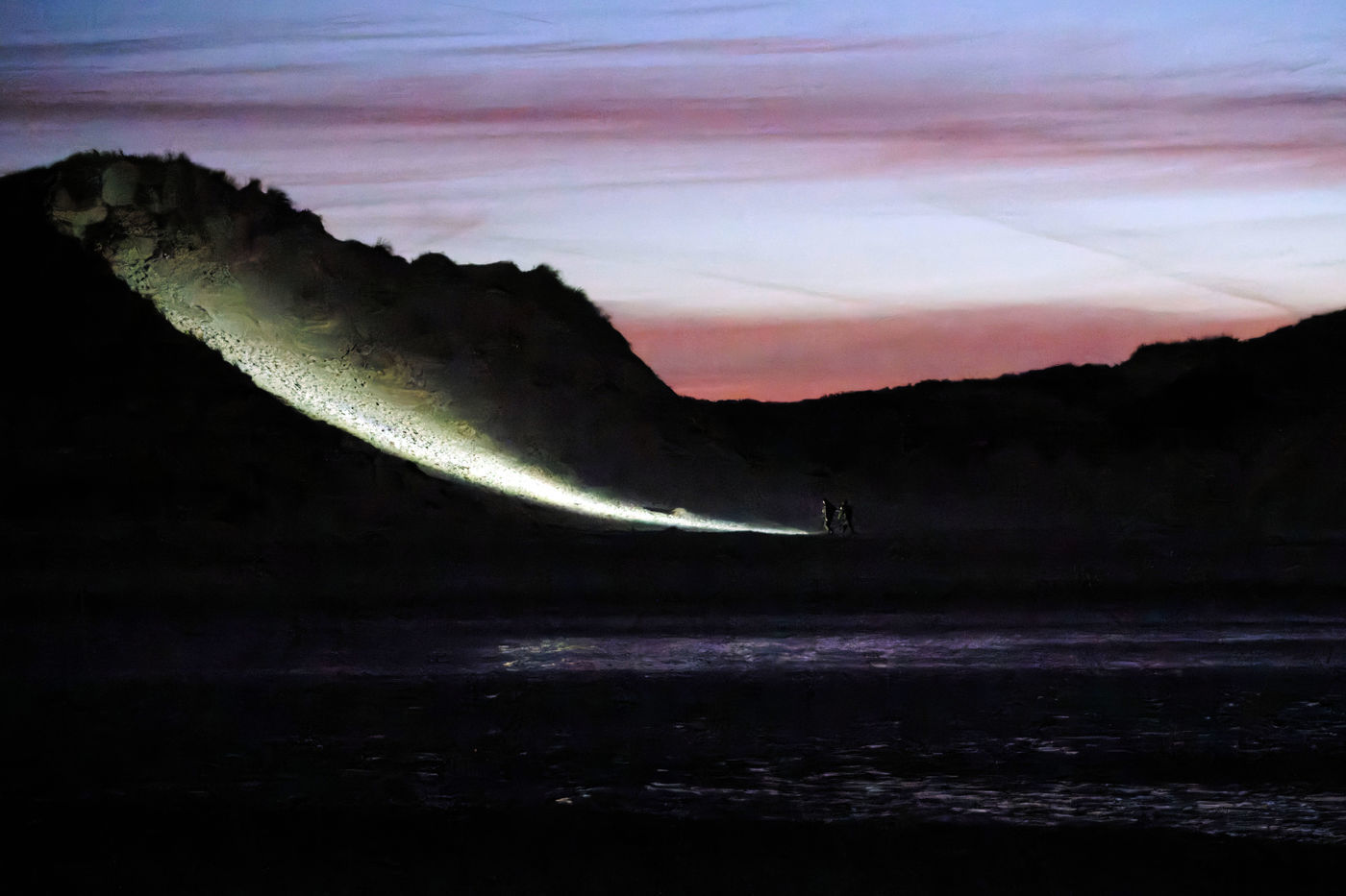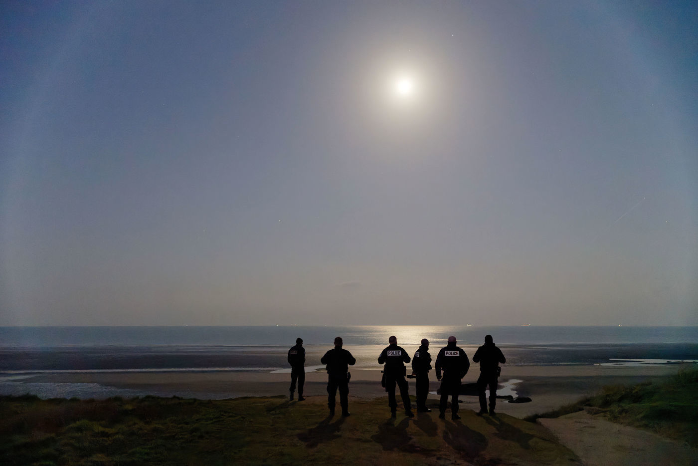 Night police patrol monitors the beach of Wimereux, near Calais, to prevent Channel crossing attempts by migrants, in Wimereux, Northern France, on December 21, 2021. The investigation into the sinking of migrants in the English Channel that left 27 people dead on the night of November 24 was handed over to Parisian investigating judges on December 17, the Paris prosecutor's office said.
