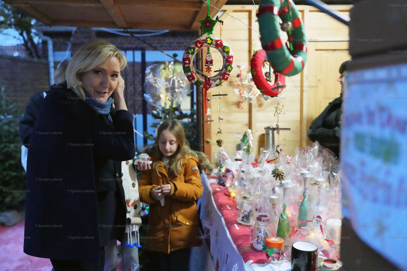 Marine Le Pen visite le marché de Noël à Dourges
