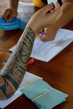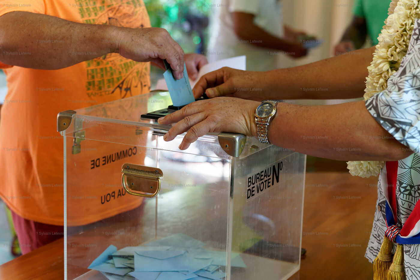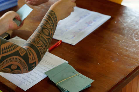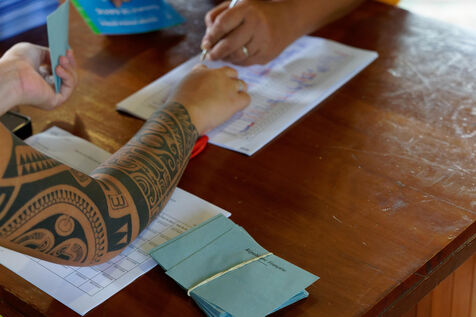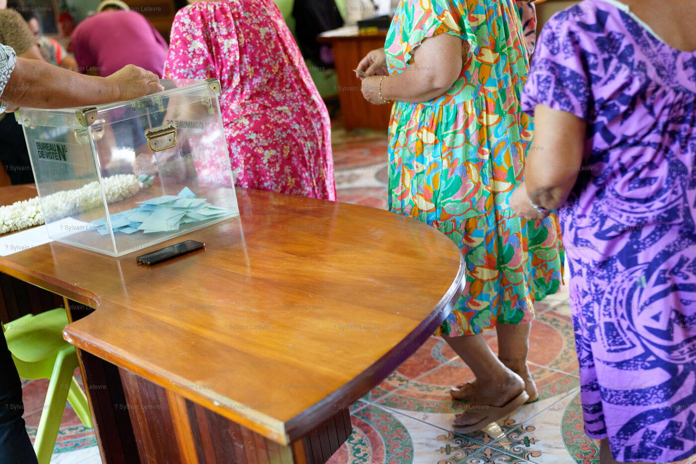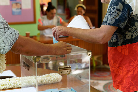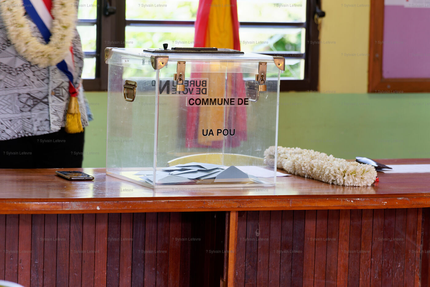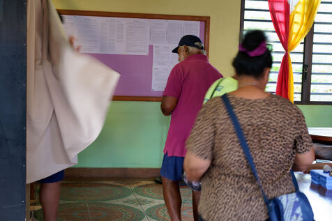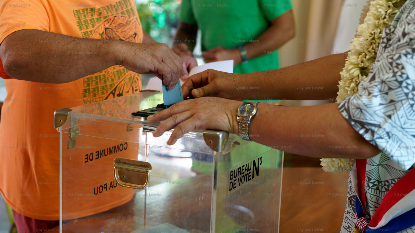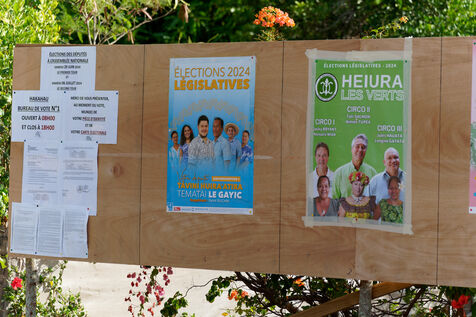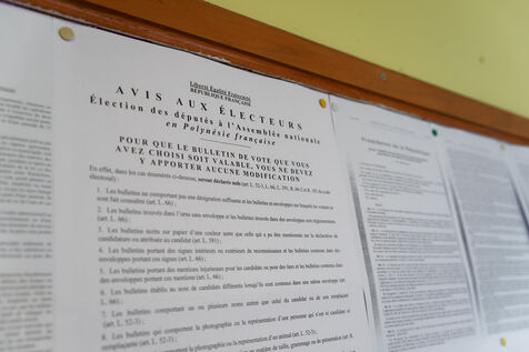 Jour de vote pour le premier tour des élections législatives à Hakahau, dans l'archipel français d'outre-mer des îles Marquises en Polynésie française, le 29 juin 2024. Les Français d'outre-mer se sont rendus aux urnes le 29 juin 2024 pour le premier tour des élections législatives les plus suivies de l'histoire récente, à la veille d'un scrutin en France métropolitaine qui pourrait ouvrir la voie à l'arrivée au pouvoir du Rassemblement national.