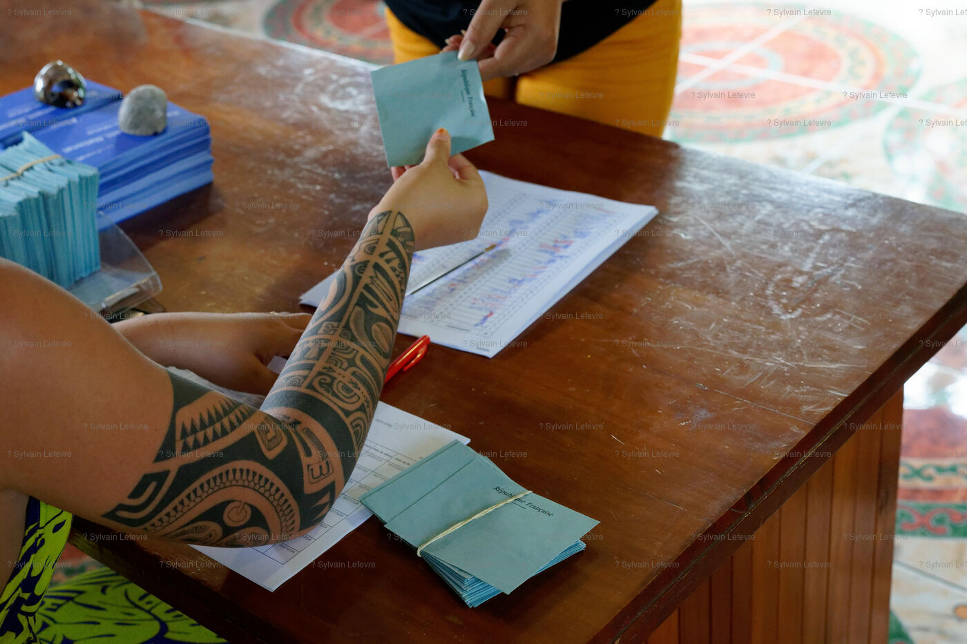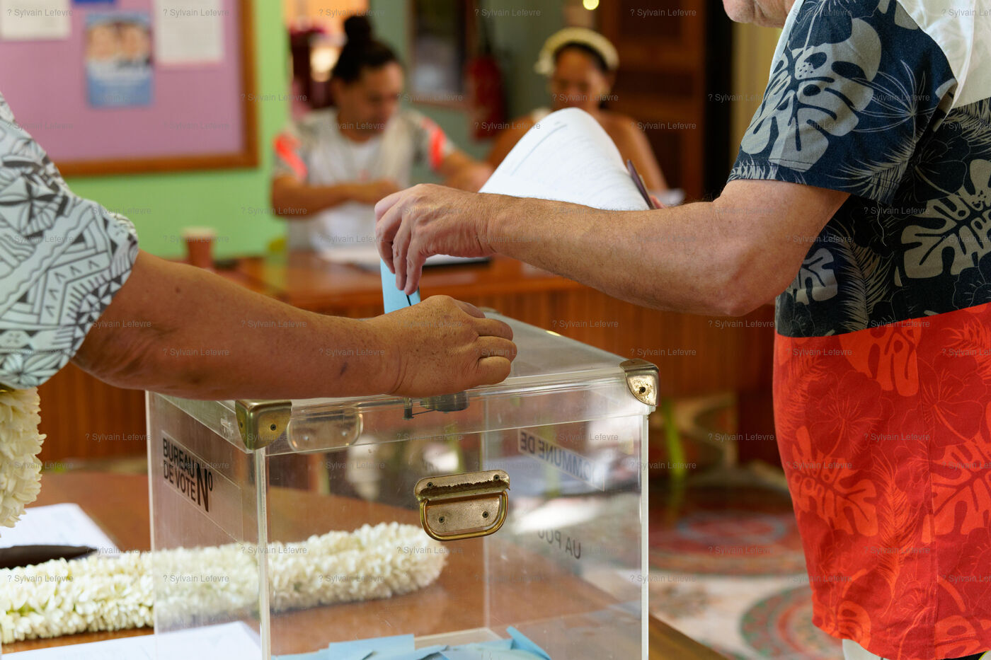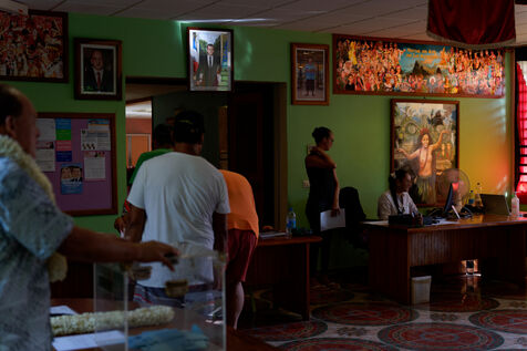 Polling station for the voting day for the first round of parliamentary elections in Hakahau, in the French overseas archipelago Marquesas Islands in French Polynesia, on June 29, 2024. French overseas voters went to the polls on June 29, 2024, for the first round of the most closely watched legislative elections in recent history, on the eve of a vote in mainland France that could pave the way for the Rassemblement National to come to power.