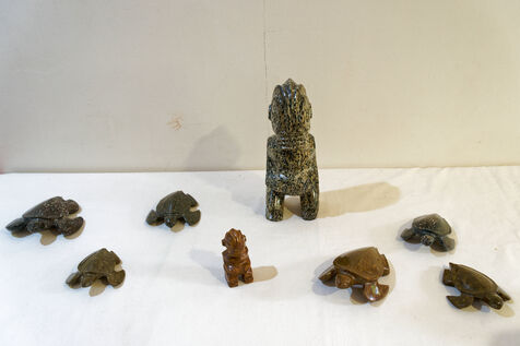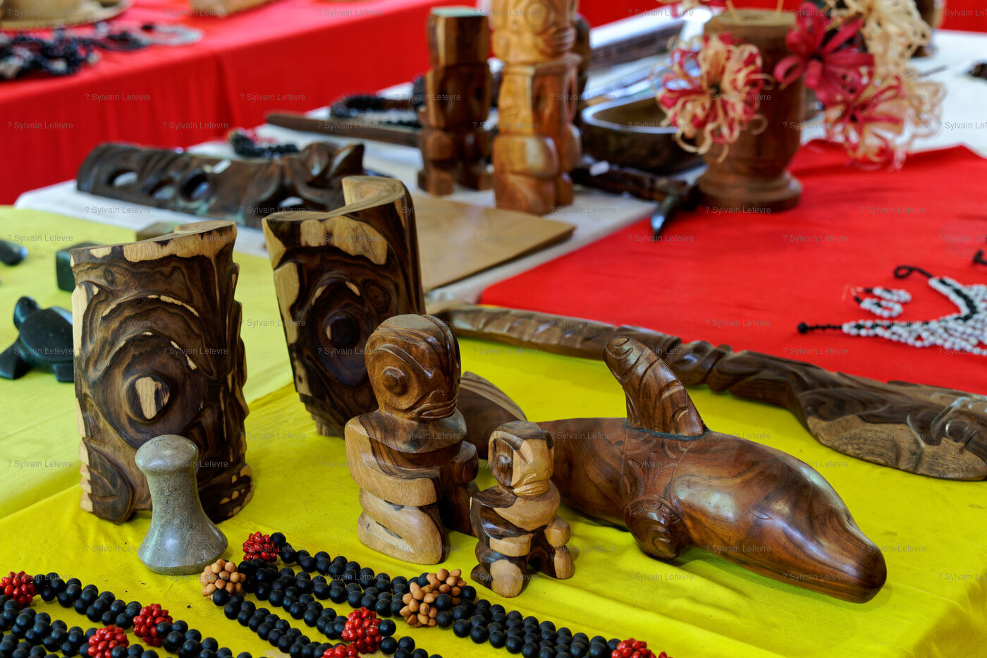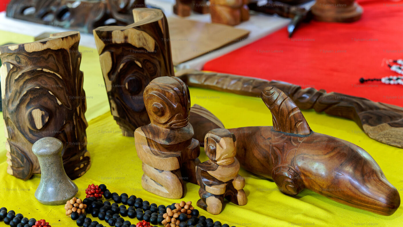 Marquesan sculptures using flower stones (garnet phonolithe) in Hakahau, on July 27, 2024 in Hakahau, Ua Pou island, Marquesas, French Polynesia. In French Polynesia (Pacific Ocean), on the island of Ua Pou, sculptors use ancestral techniques to bring out all the beauty of garnet phonolite. Different from the others, this volcanic igneous rock is here mixed with garnet. The encrustation of minerals gives the impression of seeing petals appear in the stone. Extremely rare, it has been identified in only a few places around the world: in French Polynesia, Brazil, Ethiopia and in the Massif Central (France, Europe). There are several colors of garnet phonolite: black, yellow and red. In the Marquesas archipelago, the rock is cut and then sculpted in the shape of a bowl, a tiki or marine animals. The UNESCO World Heritage Committee will hold its 46th session from July 21 to 31, 2024 in New Delhi (India). It will examine the nominations of 27 sites for inclusion on the World Heritage List, including Te Henua Enata - Les Iles Marquises (Marquesas Islands) presented by France.