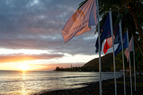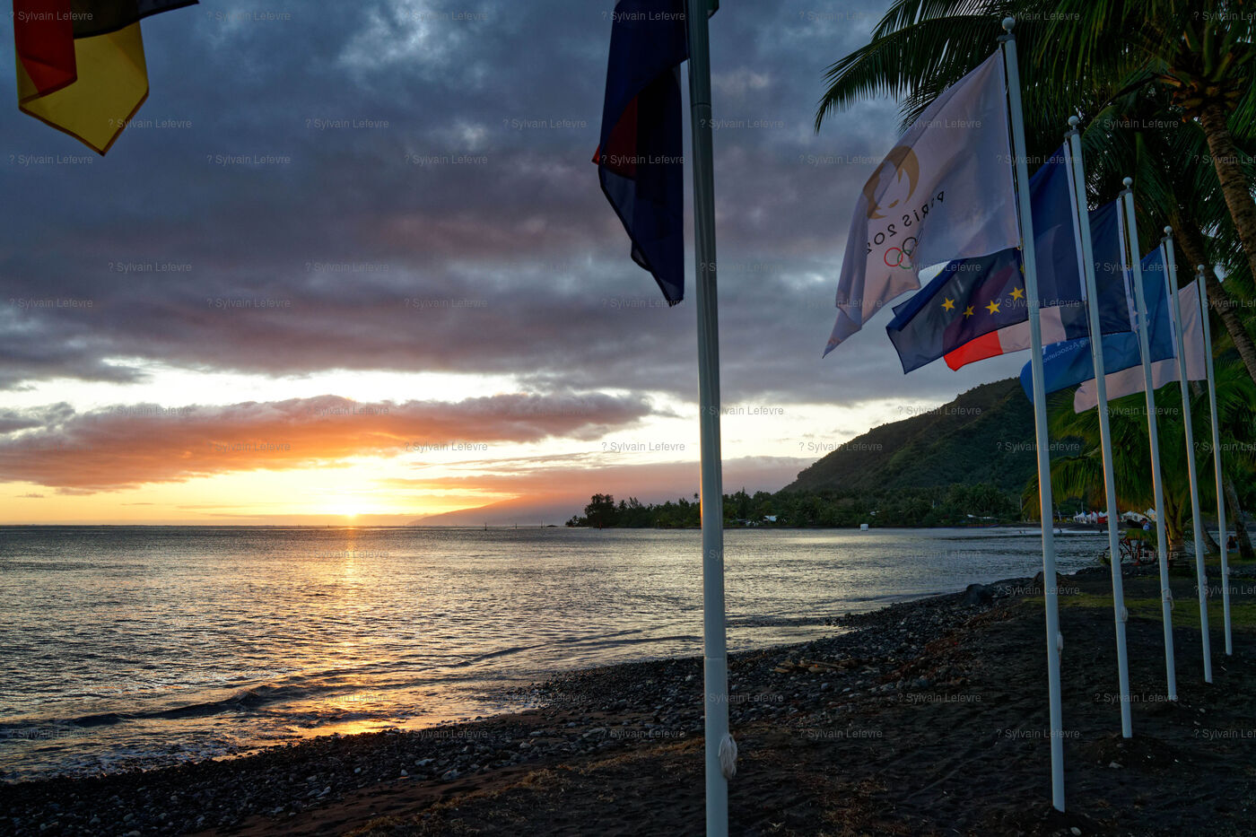 FRANCE - OLYMPIC GAMES PARIS 2024 - POLYNESIA - SUNSET AT OLYMPIC SITE OF TEAHUPO'O