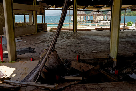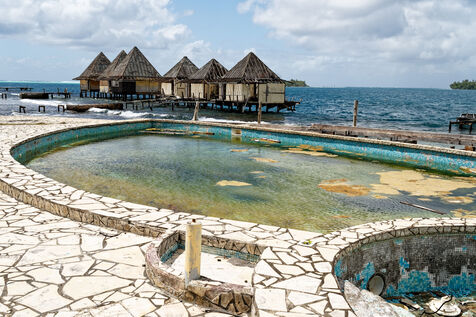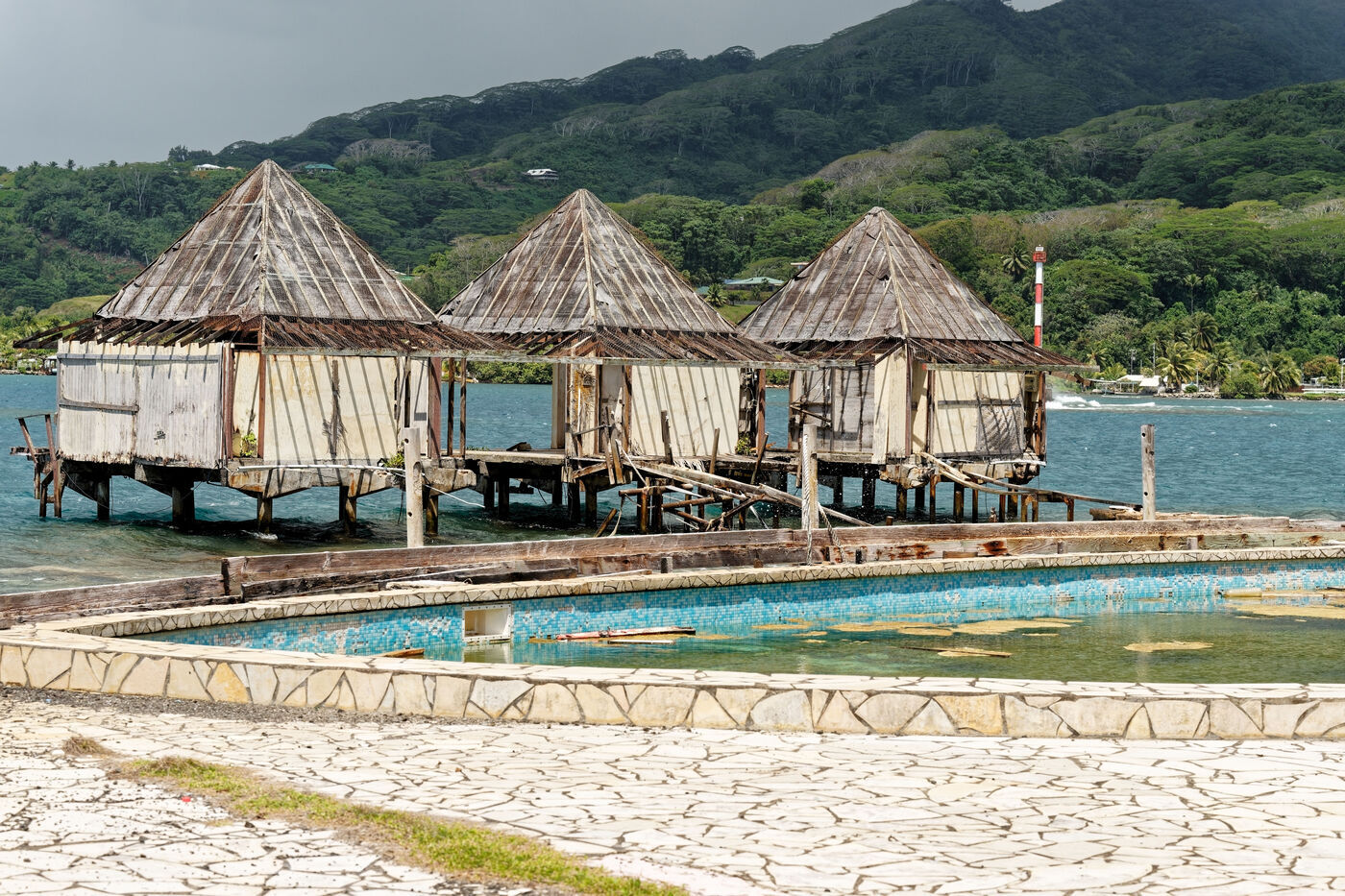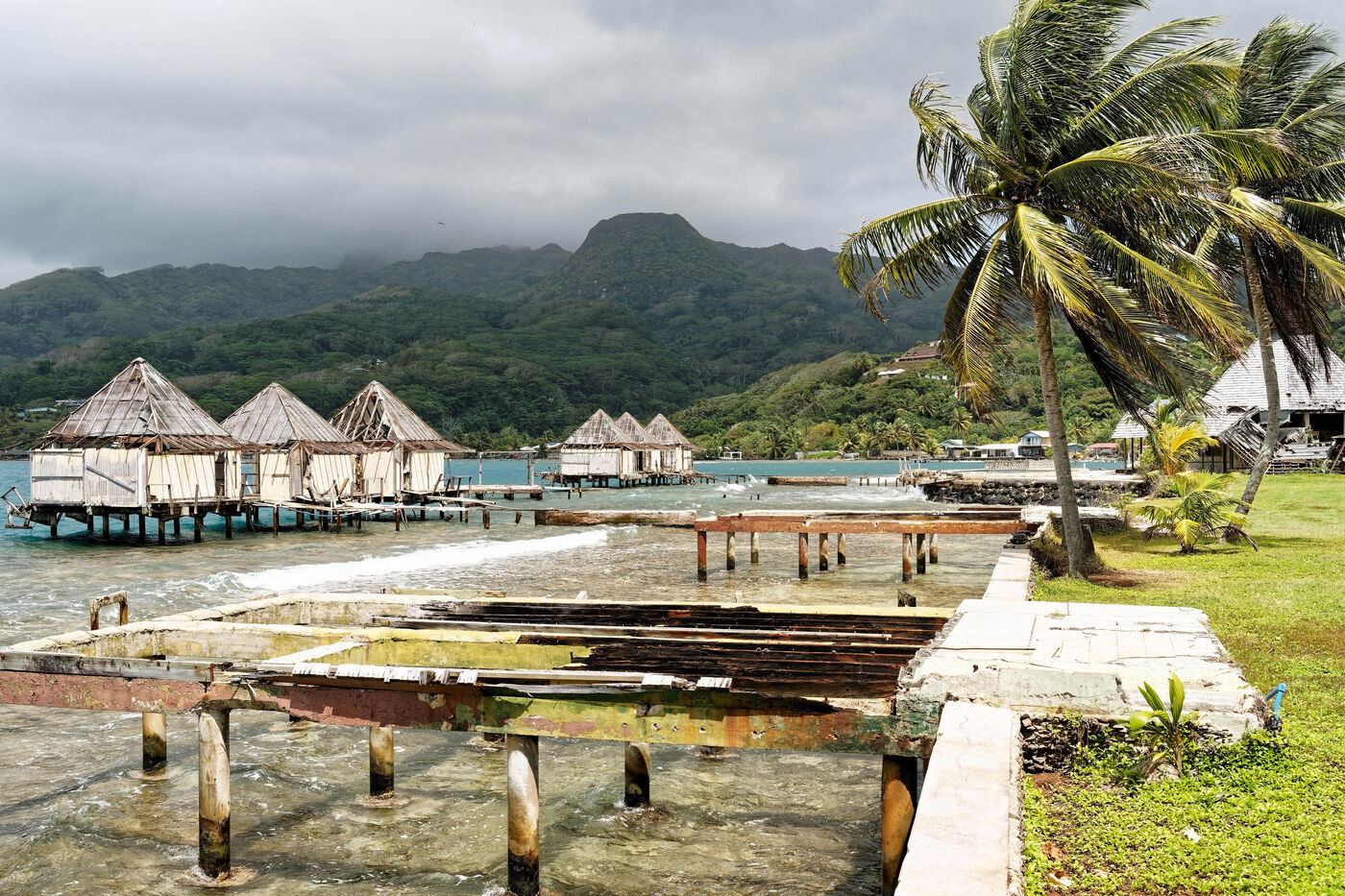 After a fire in the early 90s, the Bali Hai was sold and became the Hawaiki Nui Hôtel. But in March 2015, the hotel, then owned by the Tahiti Nui Travel group, then headed by Franck Falletta, closed its doors and has since been abandoned. Some of the unsafe bungalows have been razed by the town council, which now owns the land, while the rest of the hotel is deteriorating under the onslaught of the waves.
