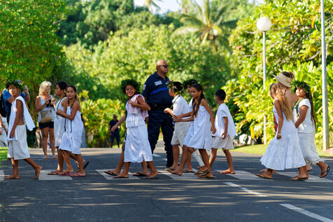 Hundreds gathered to greet the voyaging crews and the arrival ceremony. The crews were granted permission to enter Teava Moa; the sacred passage in to Raʻiātea. From there, paddlers were seen transporting crew members to shore.