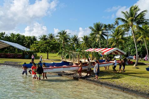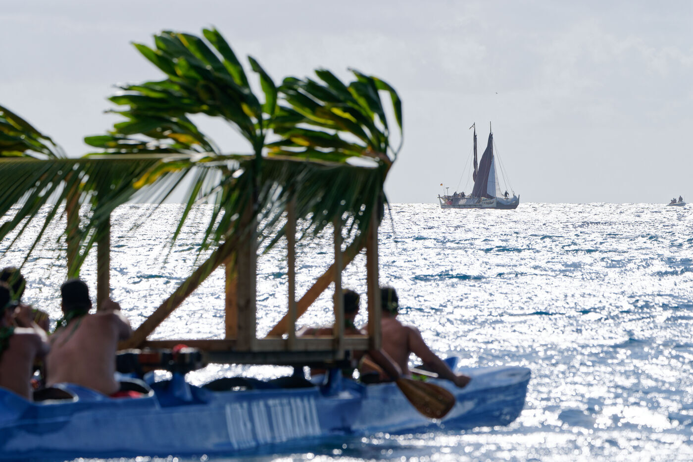 Les équipages ont été célébrés par des cérémonies de pierre et d'awa sur le Marae Taputapuātea, en hommage au site sacré et à leurs ancêtres polynésiens.