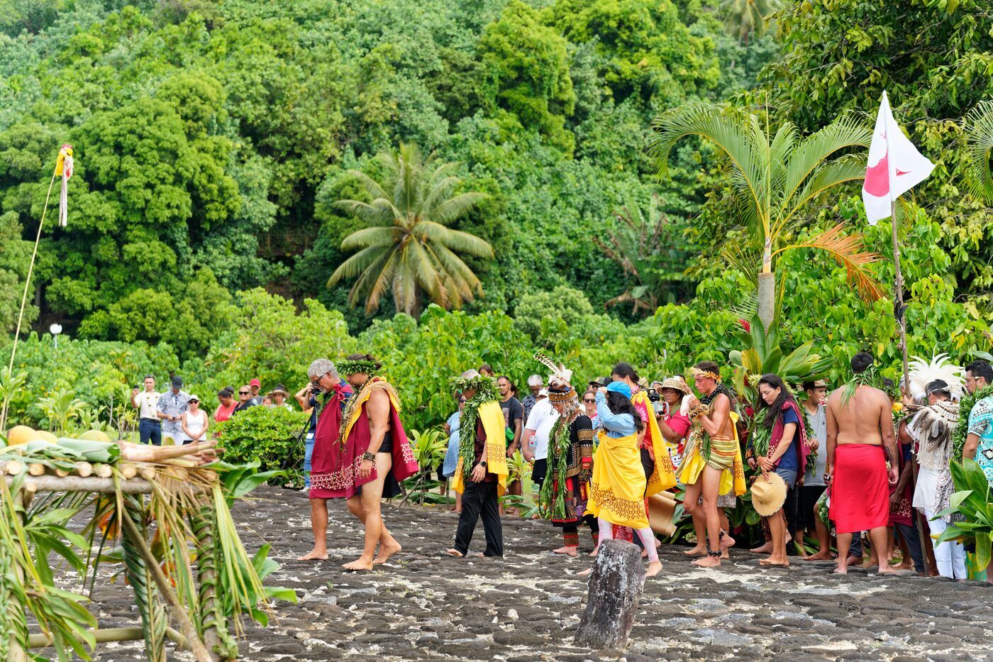 Les équipages ont été célébrés par des cérémonies de pierre et d'awa sur le Marae Taputapuātea, en hommage au site sacré et à leurs ancêtres polynésiens.