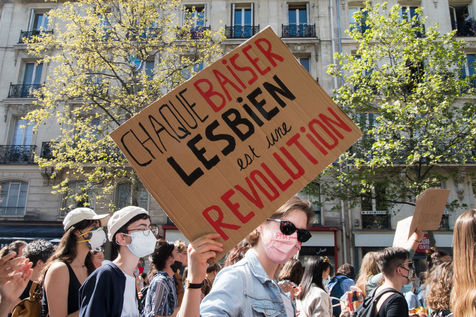 On the eve of the day of the lesbian visibility, a lesbian march crossed the streets of the center of Paris. Organized by the very young collective of Lesbian Collages, created at the end of 2020, this march aimed at carrying several claims of which those concerning the PMA for all (Medically Assisted Procreation) because the voices of the lesbians are completely absent from this debate. Sexism, lesbophobia and transphobia were also denounced.