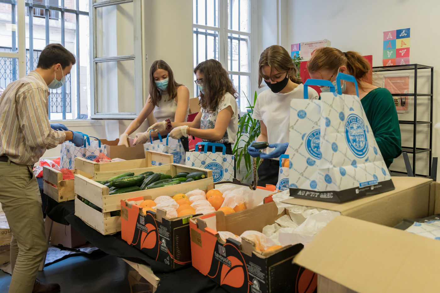 Its team of volunteers distributes 800 baskets each week during 3 distributions. Two of them are organised on Thursdays and Fridays at MIE Bastille in Paris.