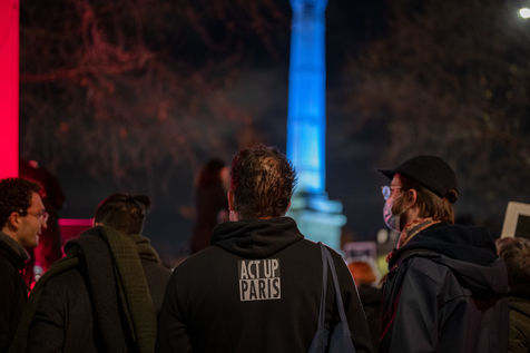 Demonstration for the world AIDS Day, organised by Act Up Paris. The AIDS activist association called for mobilisation: "Facing sanitary precariousness, community response". Place de la Bastille, 1 December 2021.