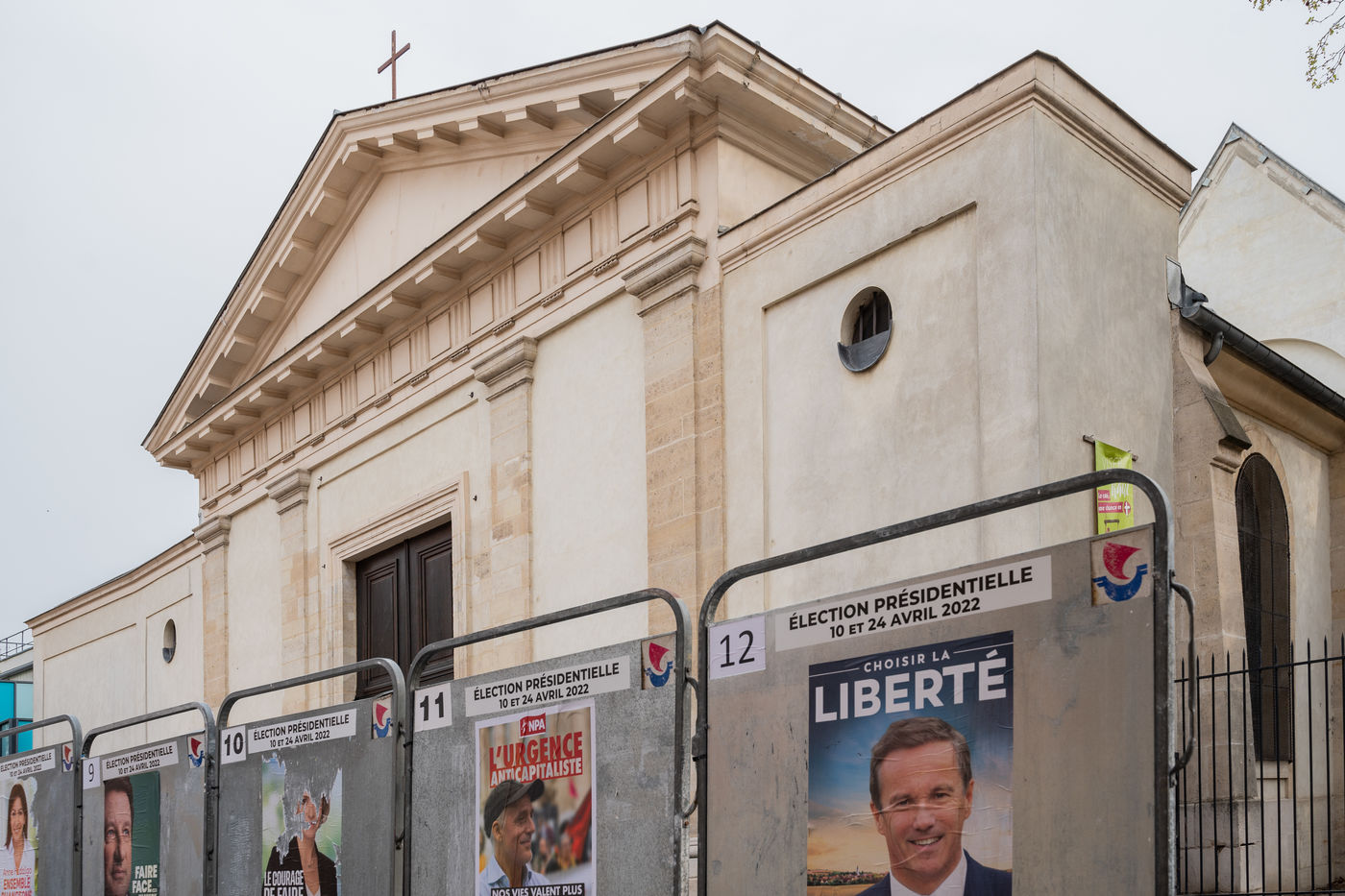 Electoral posters for the 2022 presidential and legislative elections in Paris.