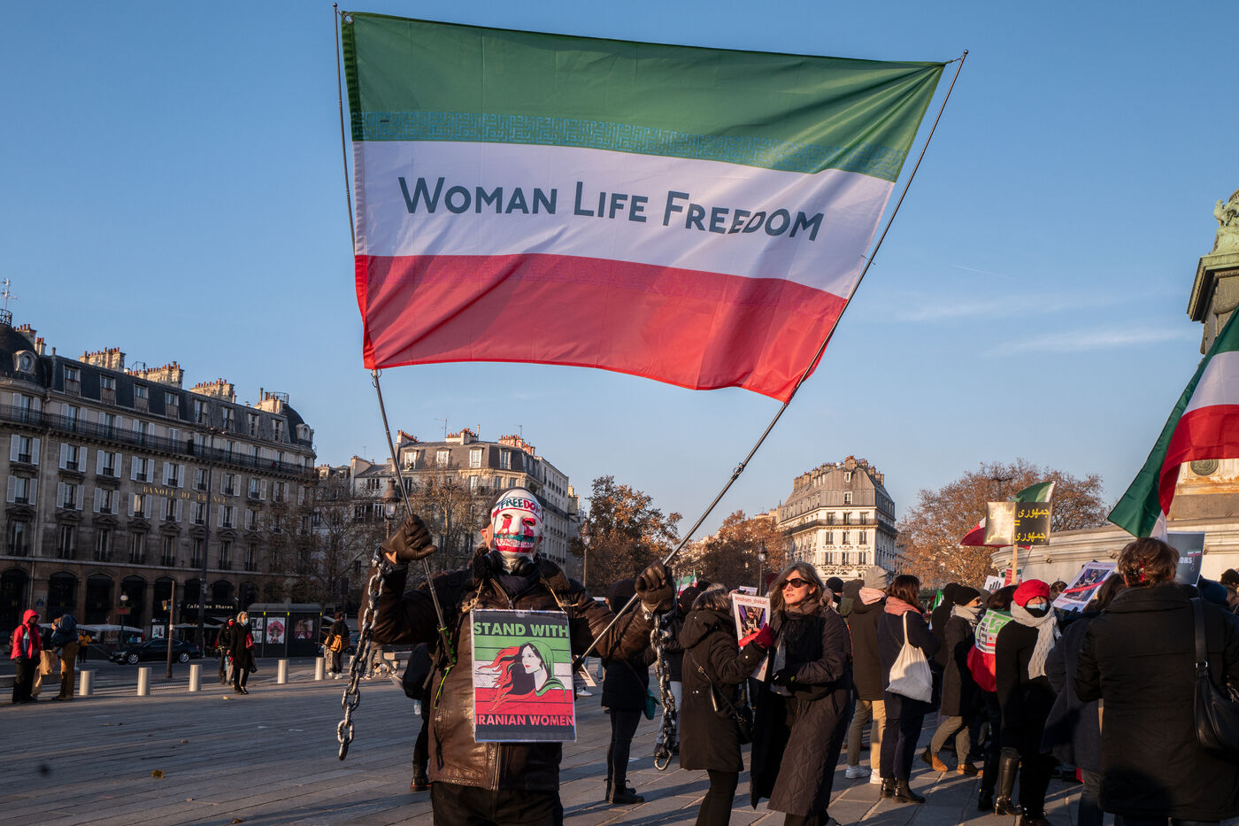 Le 17 décembre 2022, place de la Bastille, des avocats du barreau de Paris soutenus par des personnalités politiques, ainsi que le mouvement Ensemble Contre la Peine de Mort (ECPM), ont appelé à une mobilisation en soutien au peuple iranien, dans le but de dénoncer les exécutions liées aux manifestations qui ébranlent l?Iran depuis le décès de Mahsa Amini.