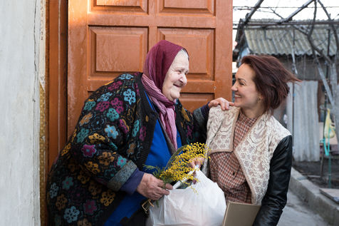 For International Women's Day, March 8, 2017, the Orthodox Church and associations decided to jointly distribute food and bouquets of flowers to the elderly in distress around Odessa, Ukraine. As a result of the war and the economic crisis, many people are in need. The sudden drop in the hryvnia in 2015 drastically reduced wages and therefore the purchasing power and standard of living of Ukrainians. This also impacts retirees, the subject of this report.