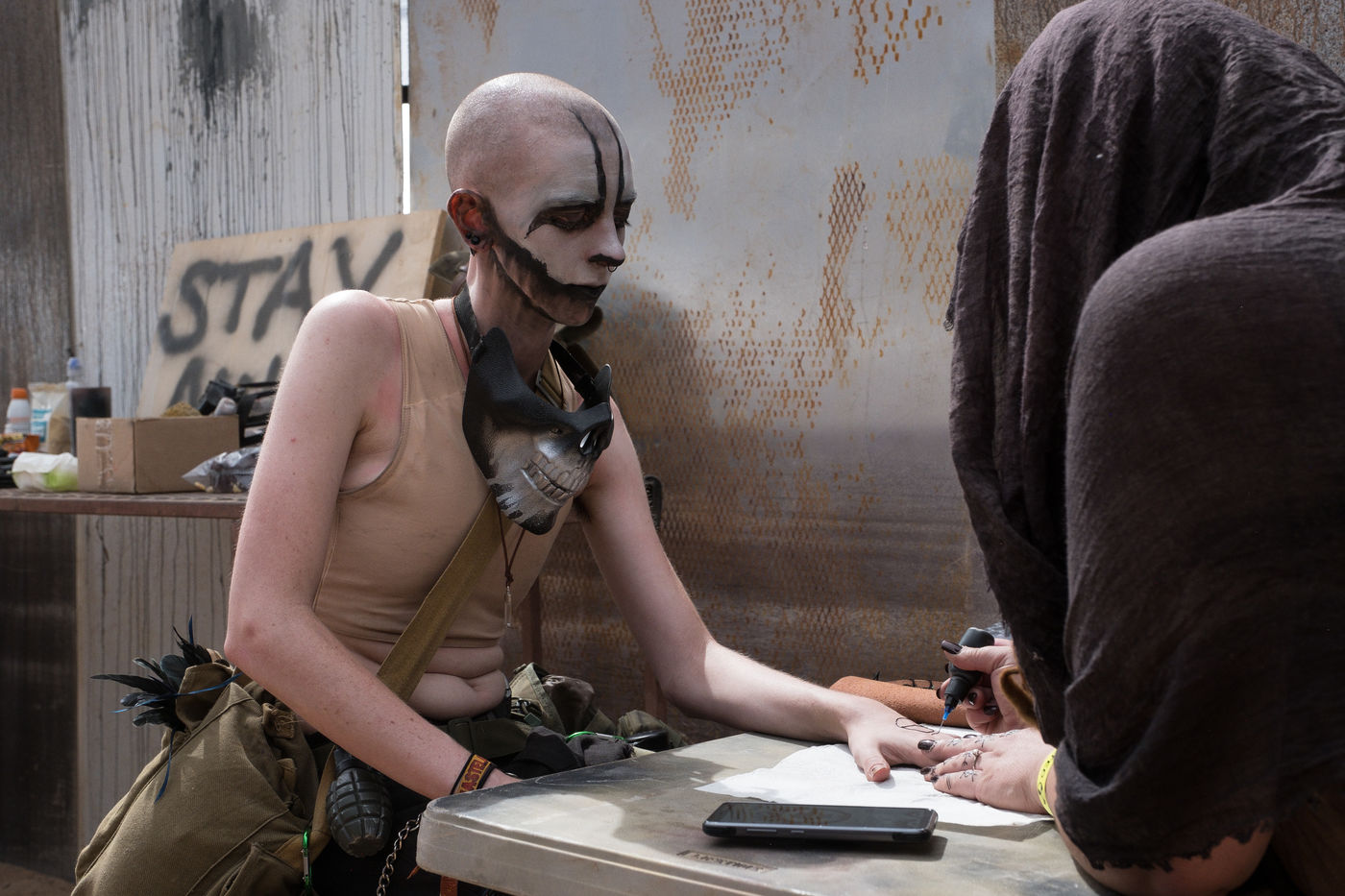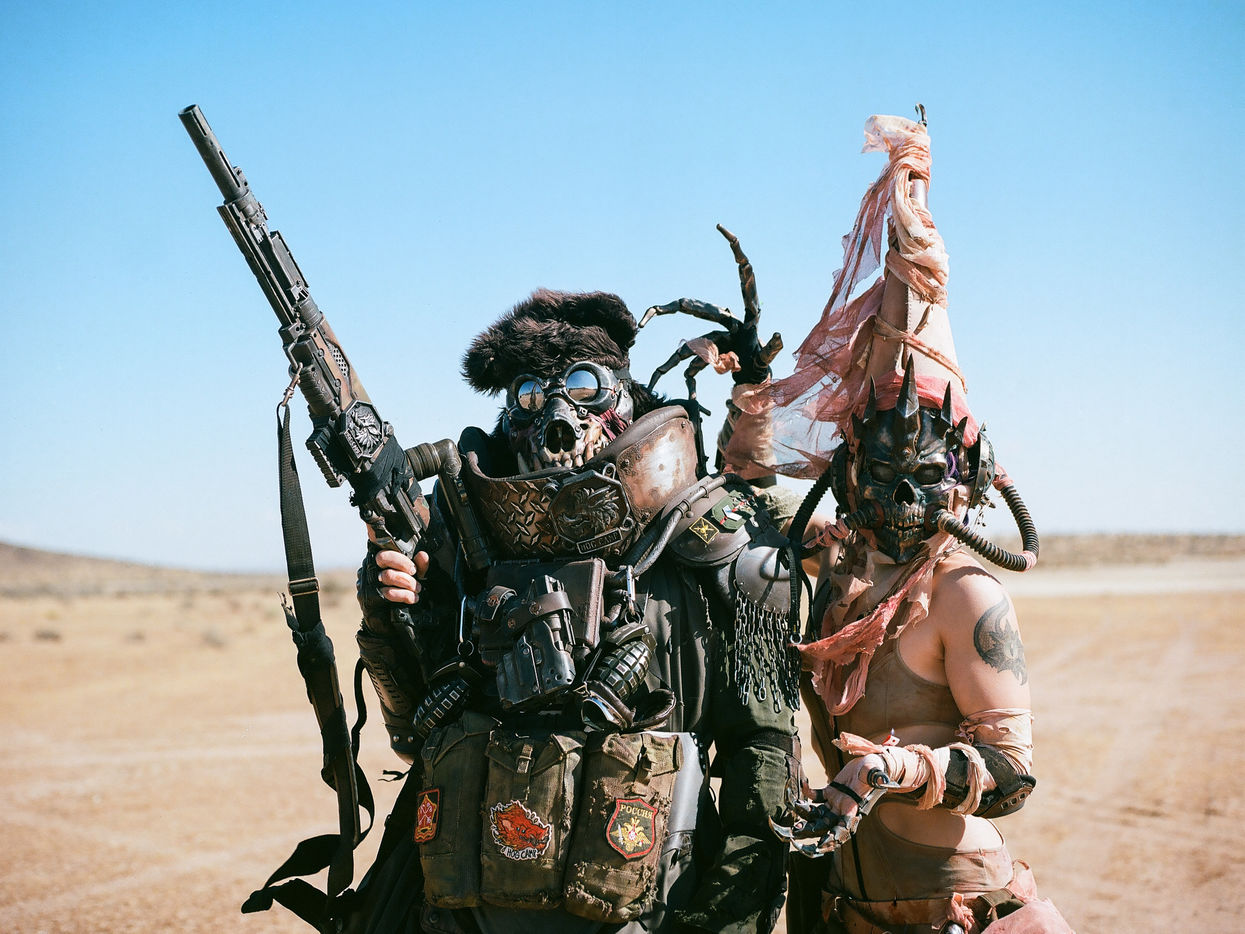 En plein désert du Mojave, à 1h30 de Los Angeles, une ville éphémère vient de sortir du sable. Des constructions en tôle rouillées jouxtent de grandes tentes en toile beige recouvertes de filet en camo militaire. D'étranges véhicules bardés de pics et d'armes en tout genre s'avancent lentement dans les allées. Une foule de gens dignes d'un film de science fiction s'écarte pour les laisser passer. Bienvenue à Wasteland ! Le plus gros festival post-apocalyptique au monde qui dure 5 jours et réunit 4300 personnes pour sa 10ème édition. Des fans de Mad Max venus de toute la planète s'y retrouvent tous les ans, à la fin du mois de septembre.