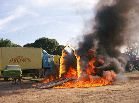 Every day of the week, except Monday, which is devoted to promotional signage, vehicles are tumbling or crumpling sheet metal. The show lasts an hour and a half and the public must be covered in case of an accident. For this, they pay a consequent fee but they are not covered because insurance companies consider their activity too risky. To control what they do, the ground must be perfectly dry. That's why the Monster Truck show season is so short. Fortunately, Helmout and his family have more than one trick up their sleeve. From September to June, they swap their roaring machines for a red nose, juggling balls and a unicycle. The Hell Drivers thus become the "Brown" circus.