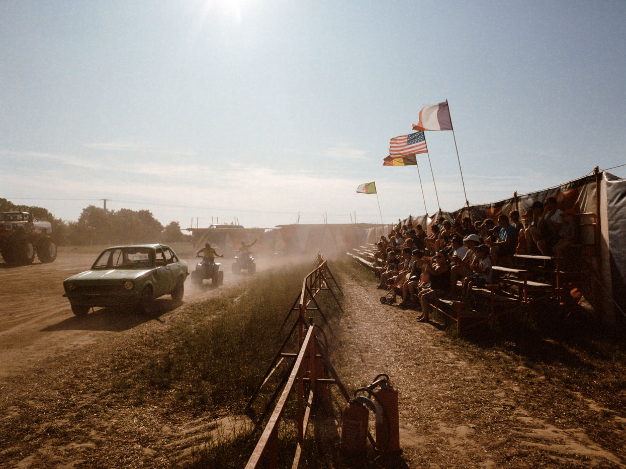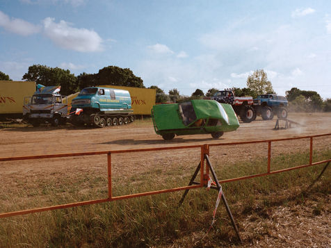 Suddenly, a giant on four wheels appears. At the wheel, Helmout, nicknamed "Le Breton", a stuntman for several generations, makes the engine roar. He joins the dirt track that hosts his daily show: the "Hell drivers" show. In the heart of the Vendée, during the whole summer, it is here that he performs with his troupe.