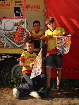 Ses trois fils illustrent bien ses propos en participant tous à leur façon. Le plus jeune, Sergueï, 5 ans à peine, fait pétarader son mini quad pour vendre des drapeaux au public. Tandis que Killian, 14 ans, à califourchon sur sa bécane, saute sans hésiter dans une arche de feu. Les cascadeurs, de moins en moins nombreux, s'apprennent les ficelles du métier de père en fils. Selon Fredo, il ne resterait plus que 25 troupes de cascadeurs en France, comptant chacune de 10 à 15 personnes. Auparavant, ils étaient itinérants mais avec l'augmentation du prix de l'essence et le désintérêt des touristes, il devient de plus en plus difficile de joindre les deux bouts. Pour faire des économies, ils ont décidé de ne pas se déplacer cette année.