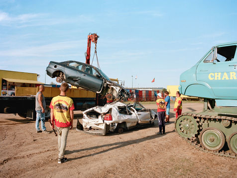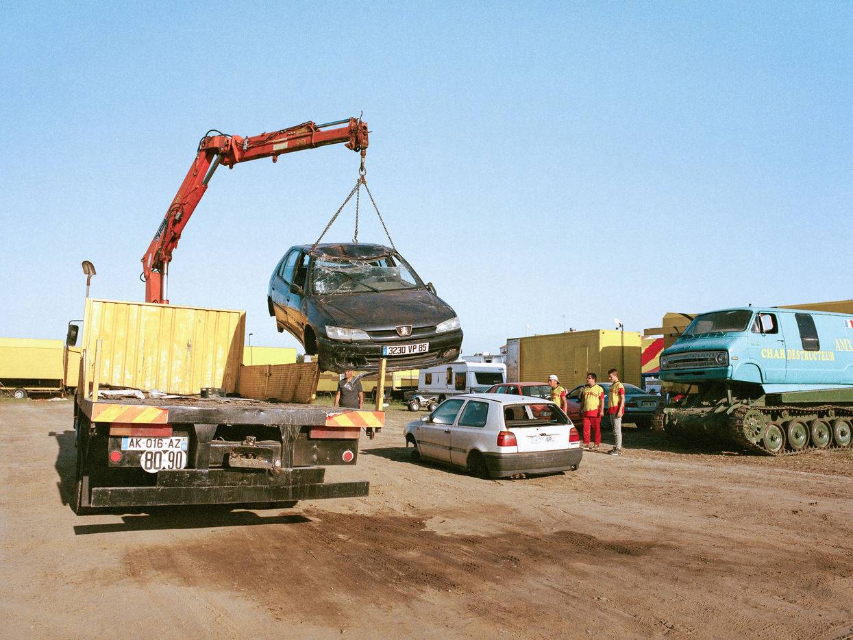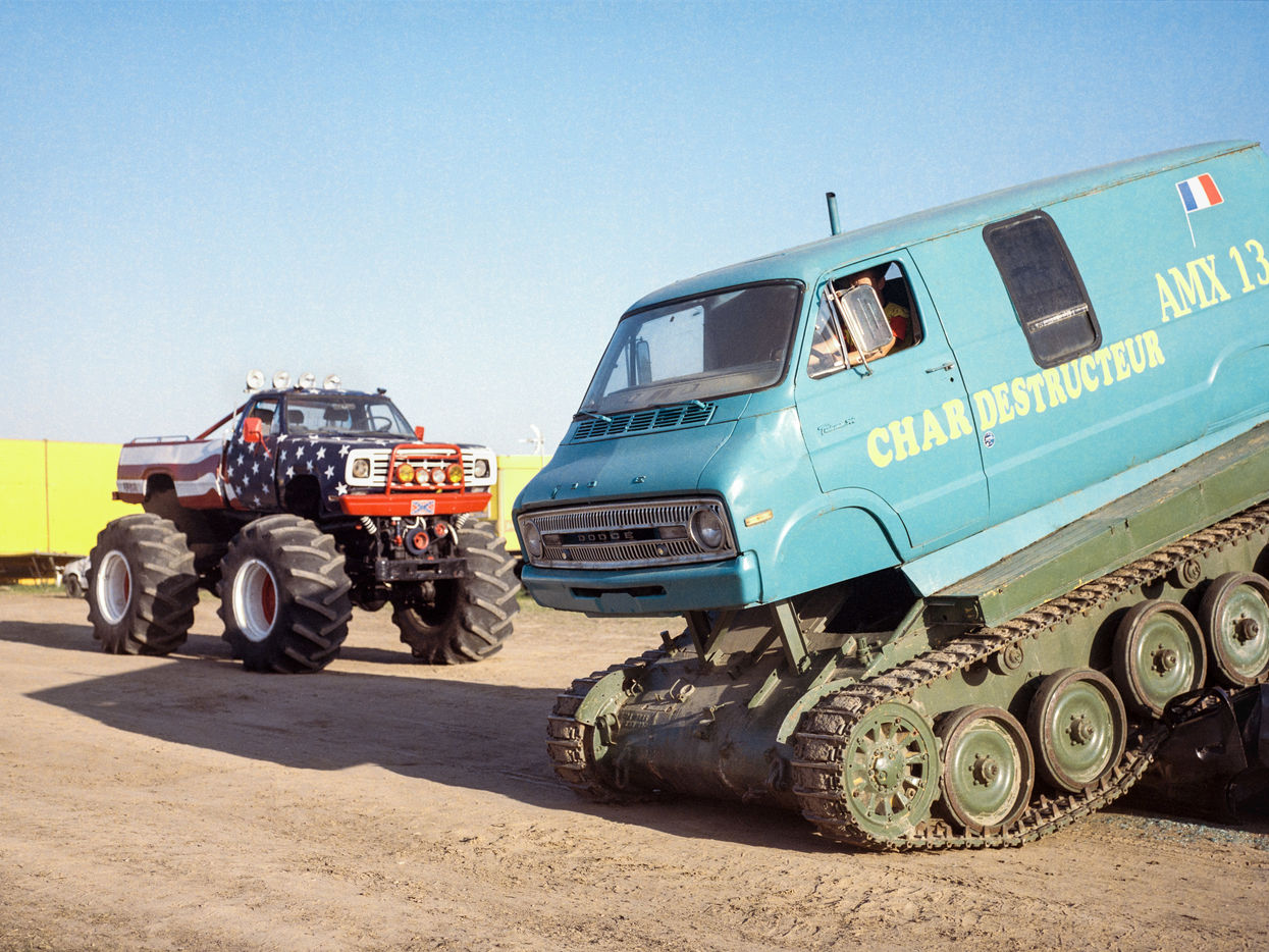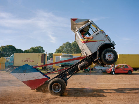 Les Hell drivers, c'est une affaire de famille. Sa femme, Carine, s'occupe de la buvette. Lui et son cousin, Fredo, font les cascades les plus techniques. Dérapage, Cabrage de camion, Equilibre sur deux roues... Et bien sûr, le clou du spectacle: l'écrabouillage de voiture. Leurs Monster trucks ont même des petits noms, Big Foot et L'américain. Le fils de Fredo, 16 ans, a appris à conduire lorsqu'il était enfant. Aujourd'hui, le visage impassible, il fait des tonneaux sur demande. Il s'élance sur la rampe, donne un brusque coup de volant et sa voiture tourne...une...deux...trois fois avant de se stabiliser. L'assemblée, qui retenait son souffle, peut respirer de nouveau. Comme dit Helmout: « c'est en forgeant qu'on devient forgeron ».