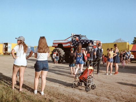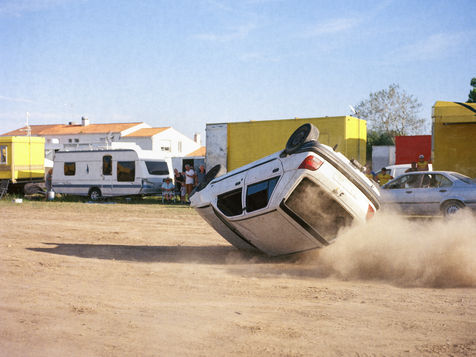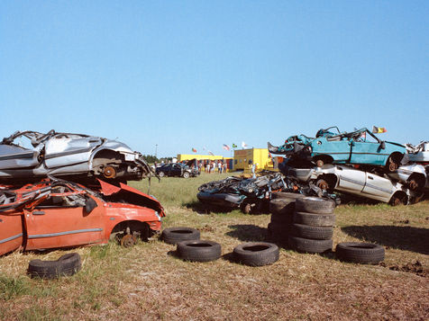 La roulotte aux couleurs vives vient d'ouvrir son guichet. Une flopée de vacanciers avec de jeunes enfants aux yeux émerveillés s'attroupe pour obtenir un ticket. Des carcasses de voitures aplaties jonchent le champ qui les entourent.