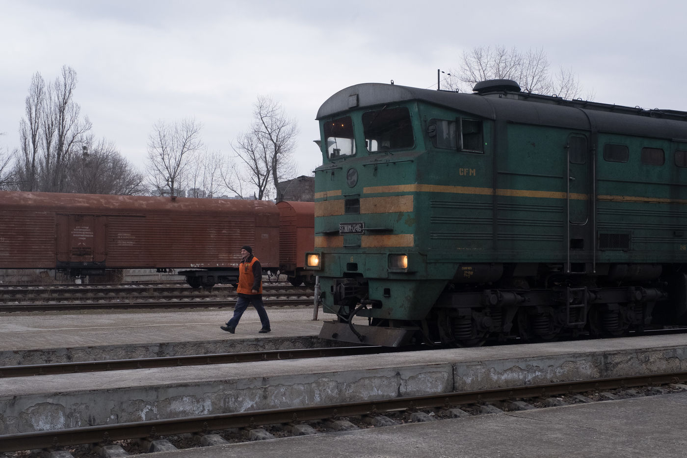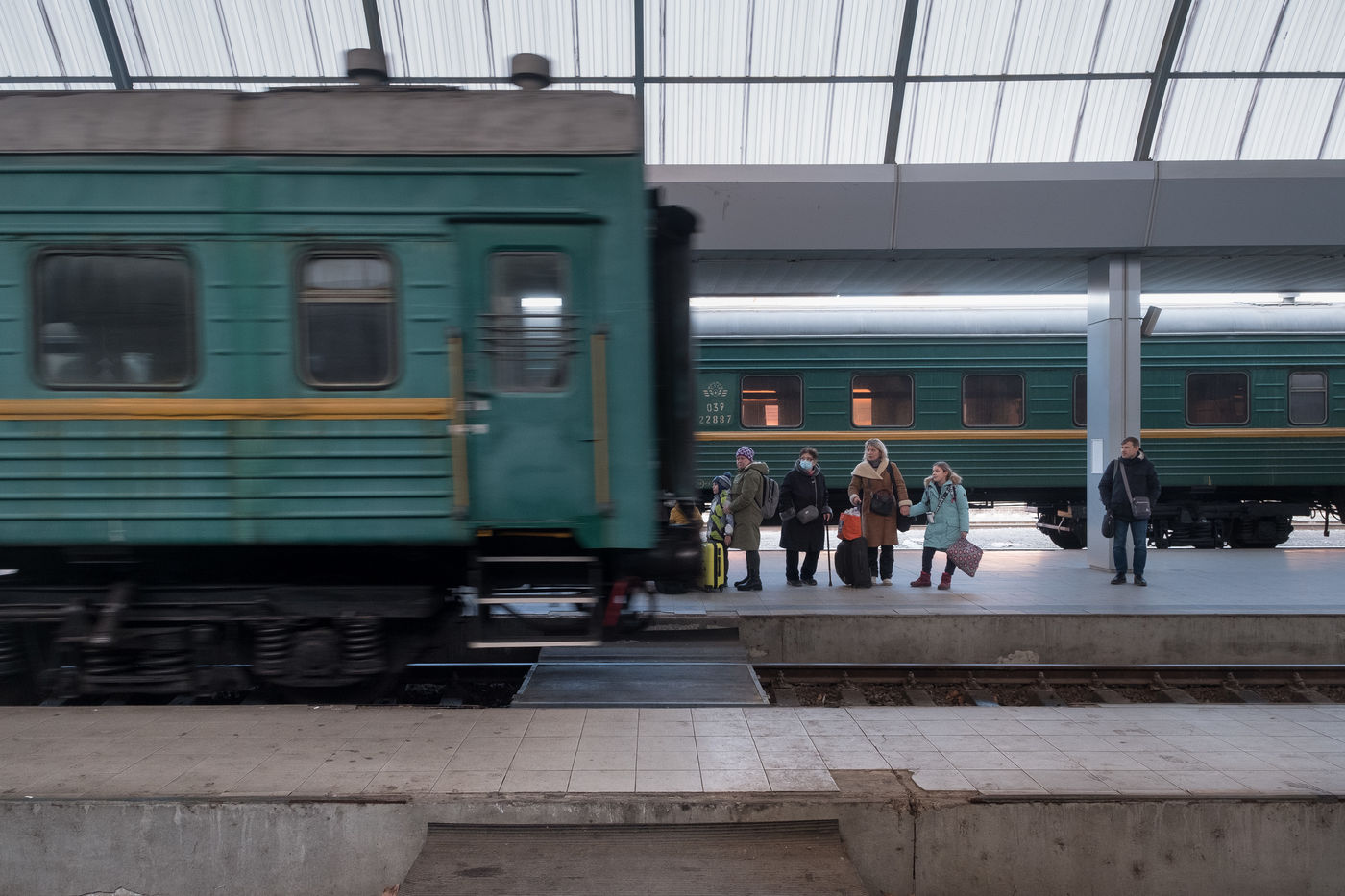 Refugees taking the 5:20 p.m. train to Bucharest at Chisinau station, Moldova.